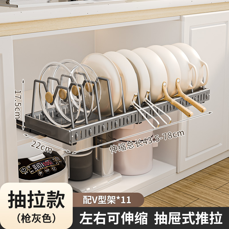 Kitchen household pull-out draining rack, storage rack, dish rack, carbon steel rack, countertop, plate and bowl rack, large capacity