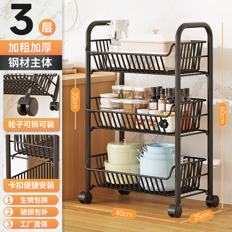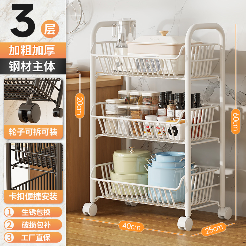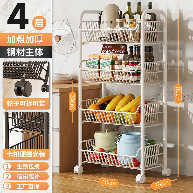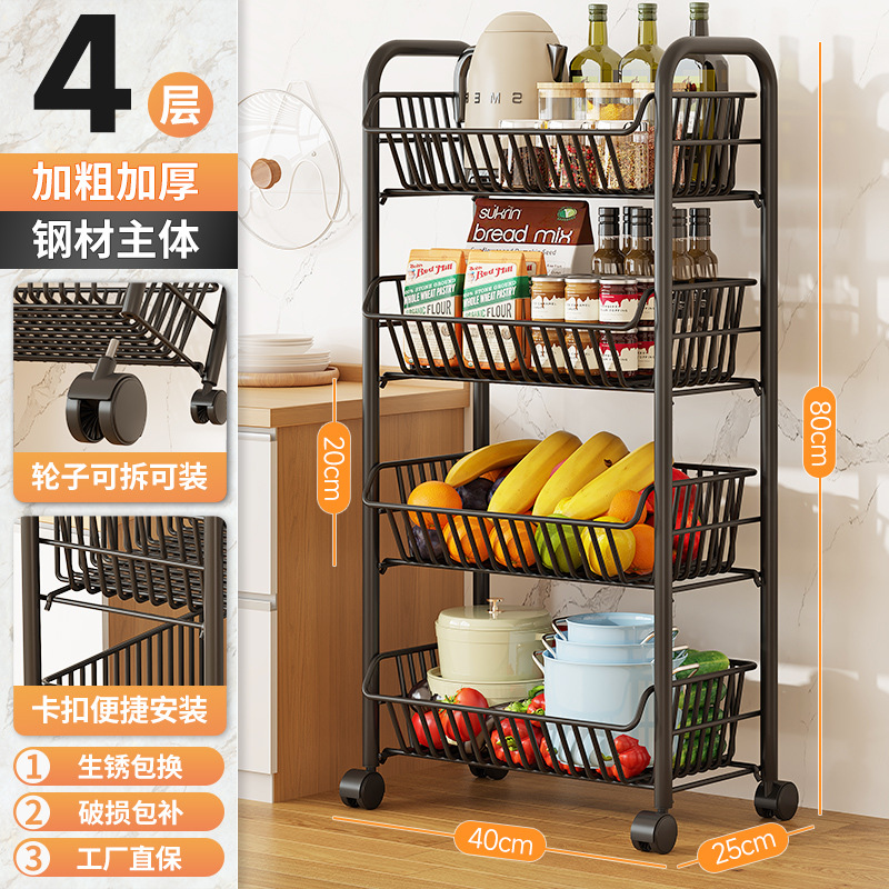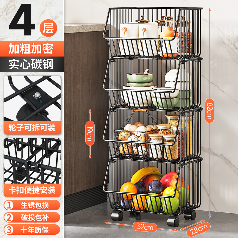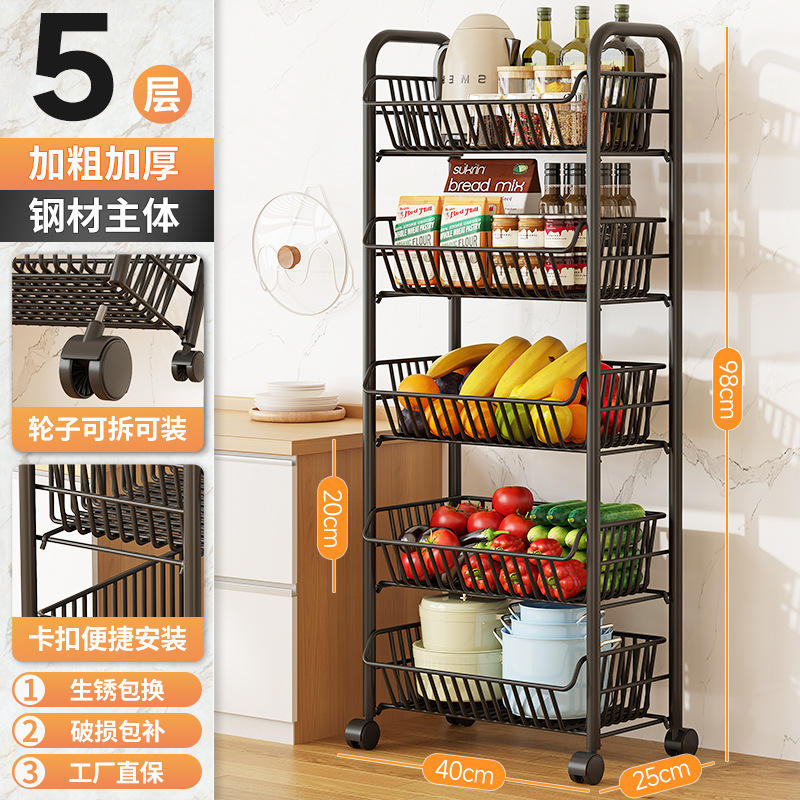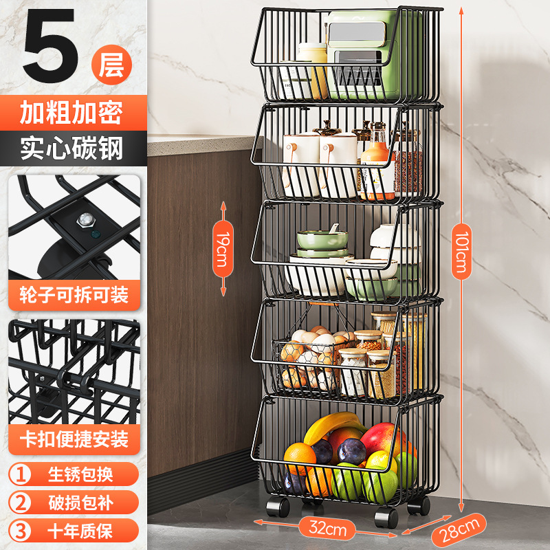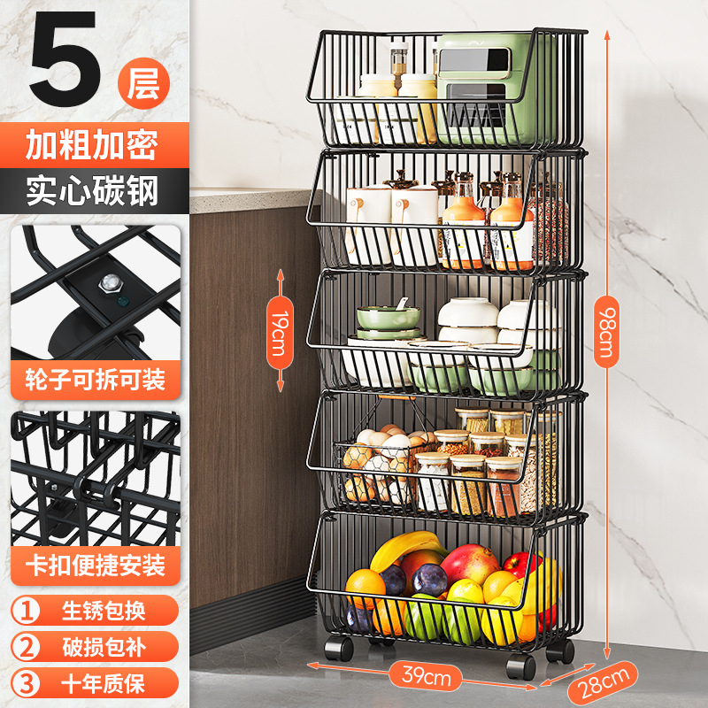 Kitchen vegetable rack, fruit storage rack, multi-functional trolley, multi-layer floor-standing storage rack, storage basket