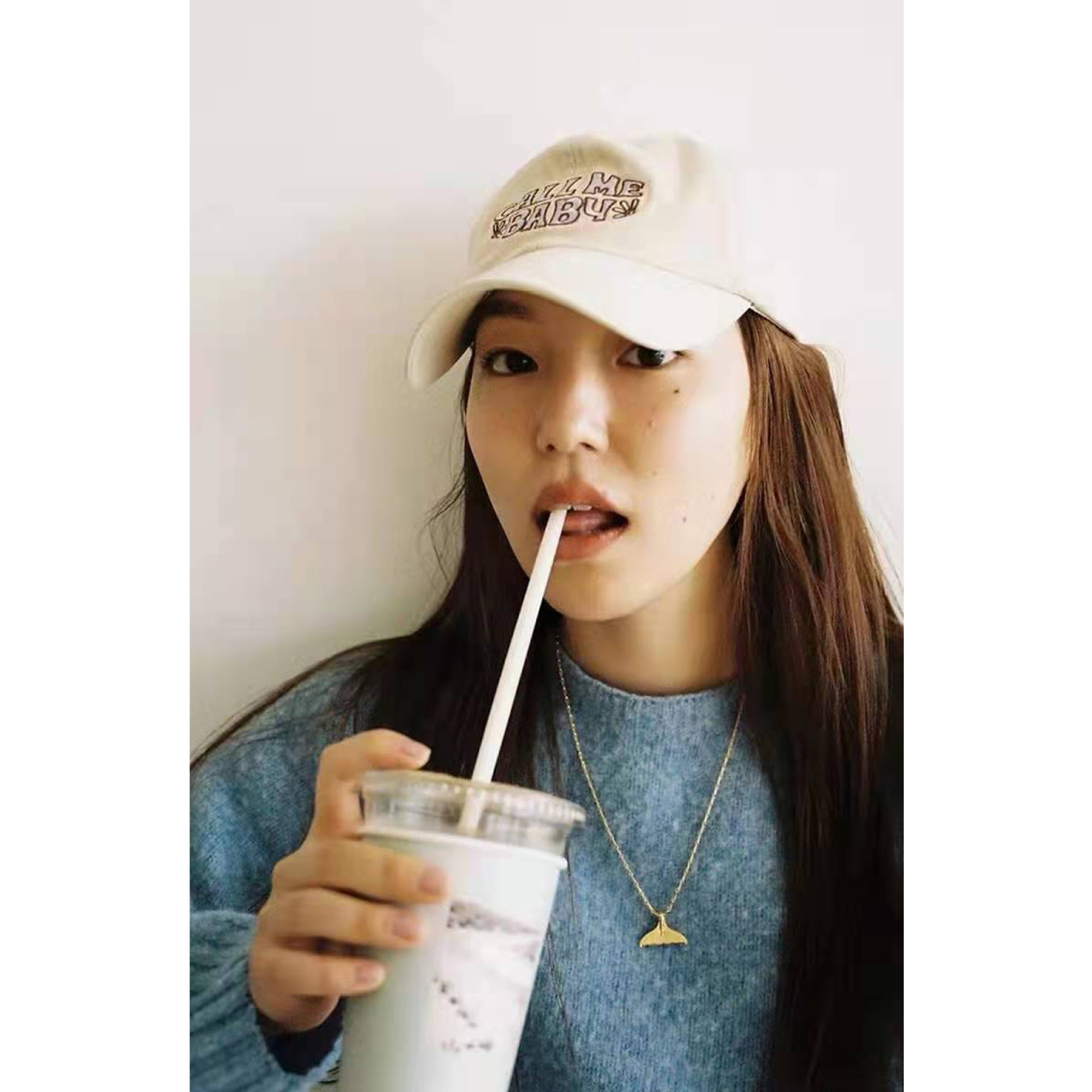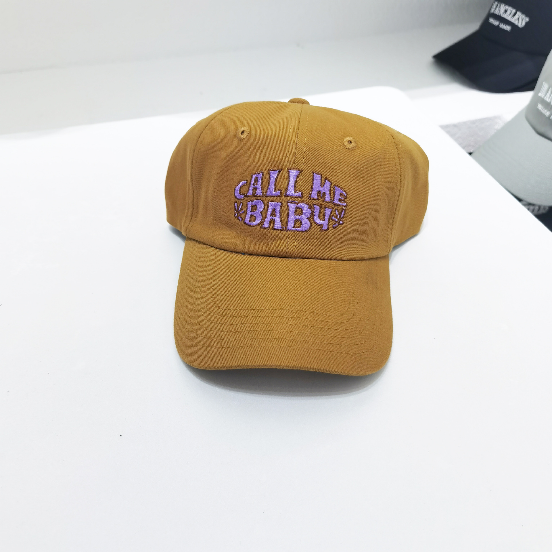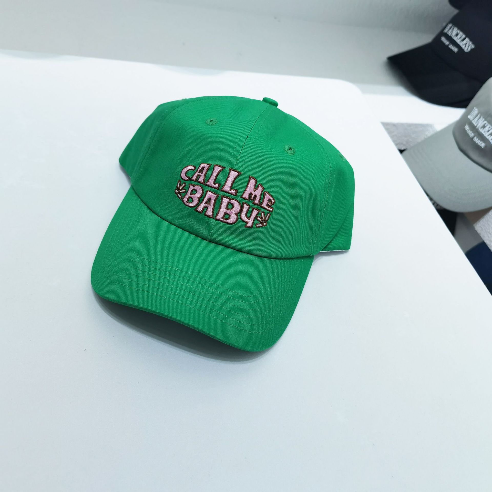 Korean 2021 Spring/Summer Women's solid color embroidered call me baby outdoor Sunshade and sun protection baseball cap