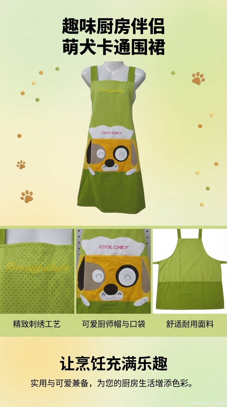 Korean cartoon dog pattern pet fashion home strap cotton apron warm and anti-slip design kitchen baking women's work clothes work waist wrap