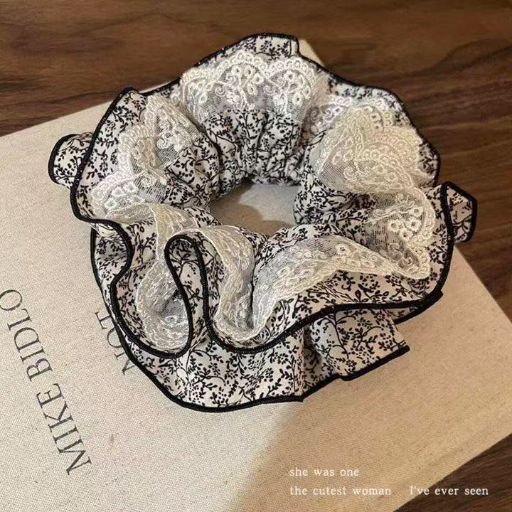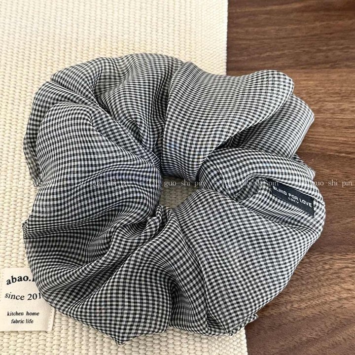 74# Black and white small checkered label mesh large intestine hair band, about 13cm