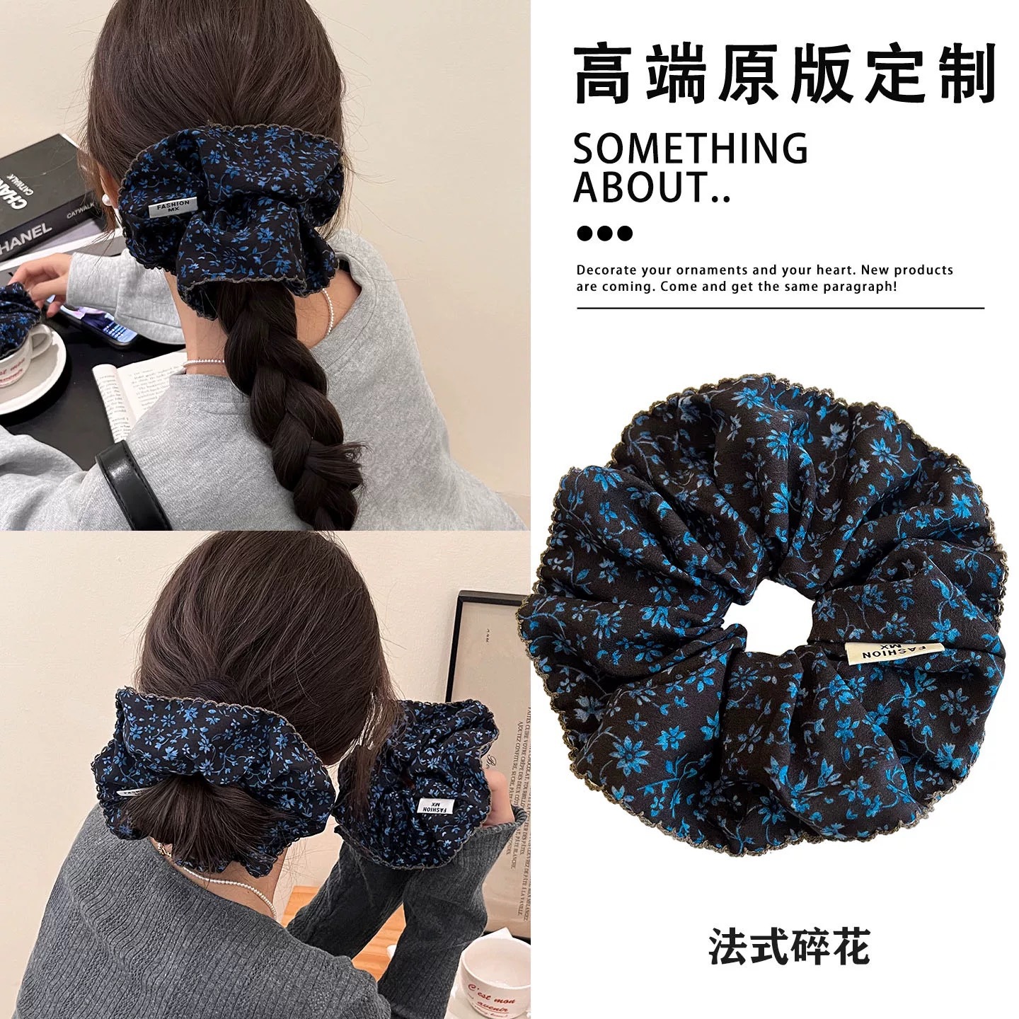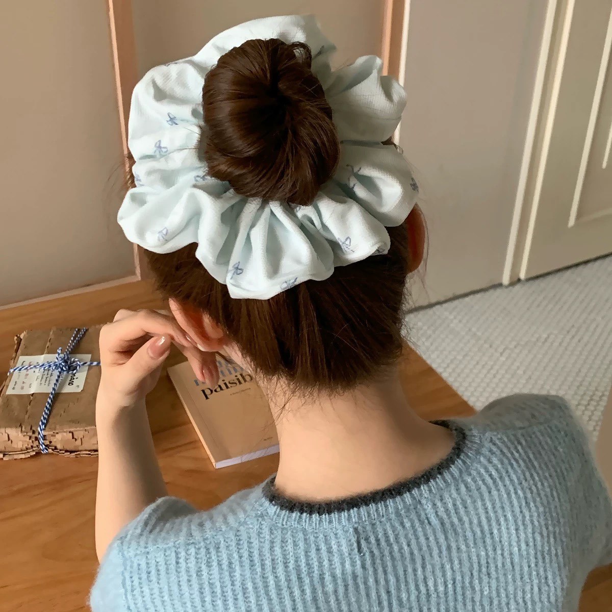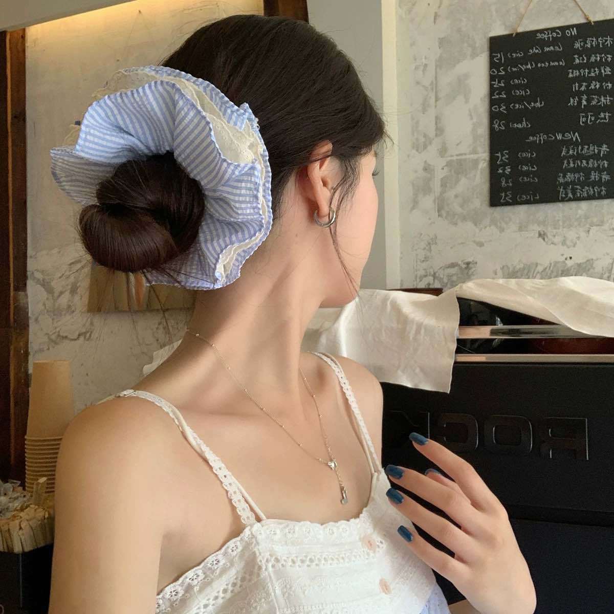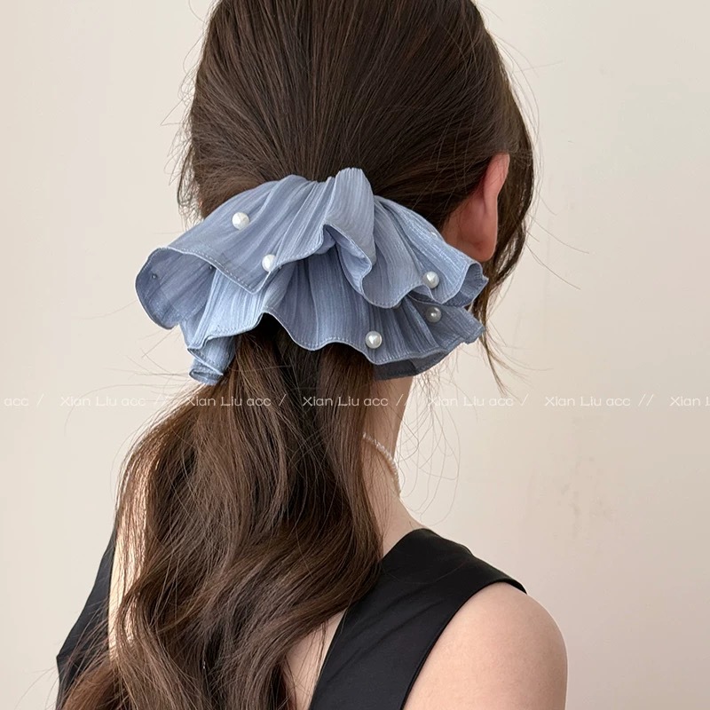 2# Blue Four-layer Large Intestine Hair Band [Super Large Korean Style Look]