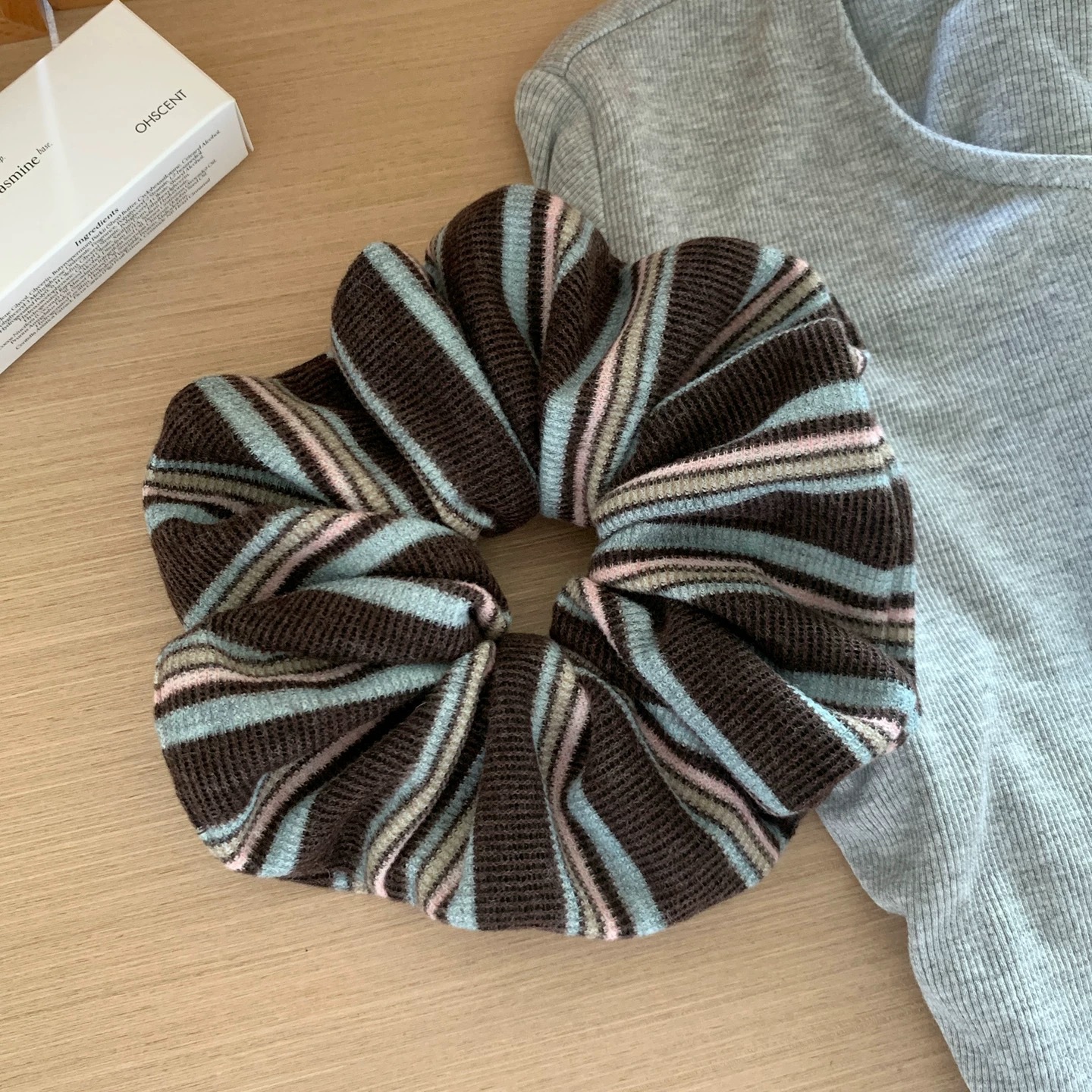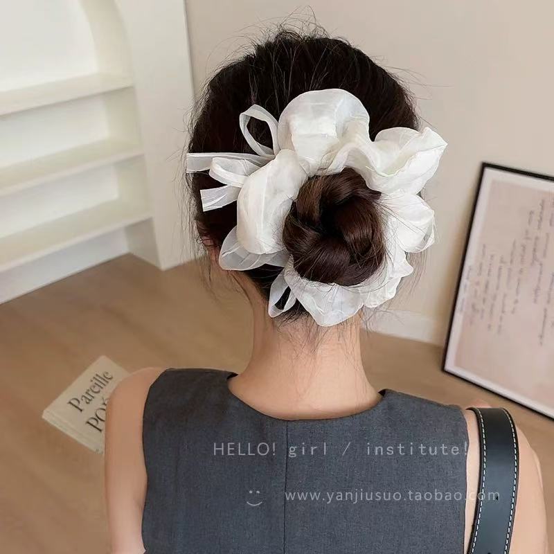 36# Grayish-white striped wrinkled large intestine hair band, approximately 15cm