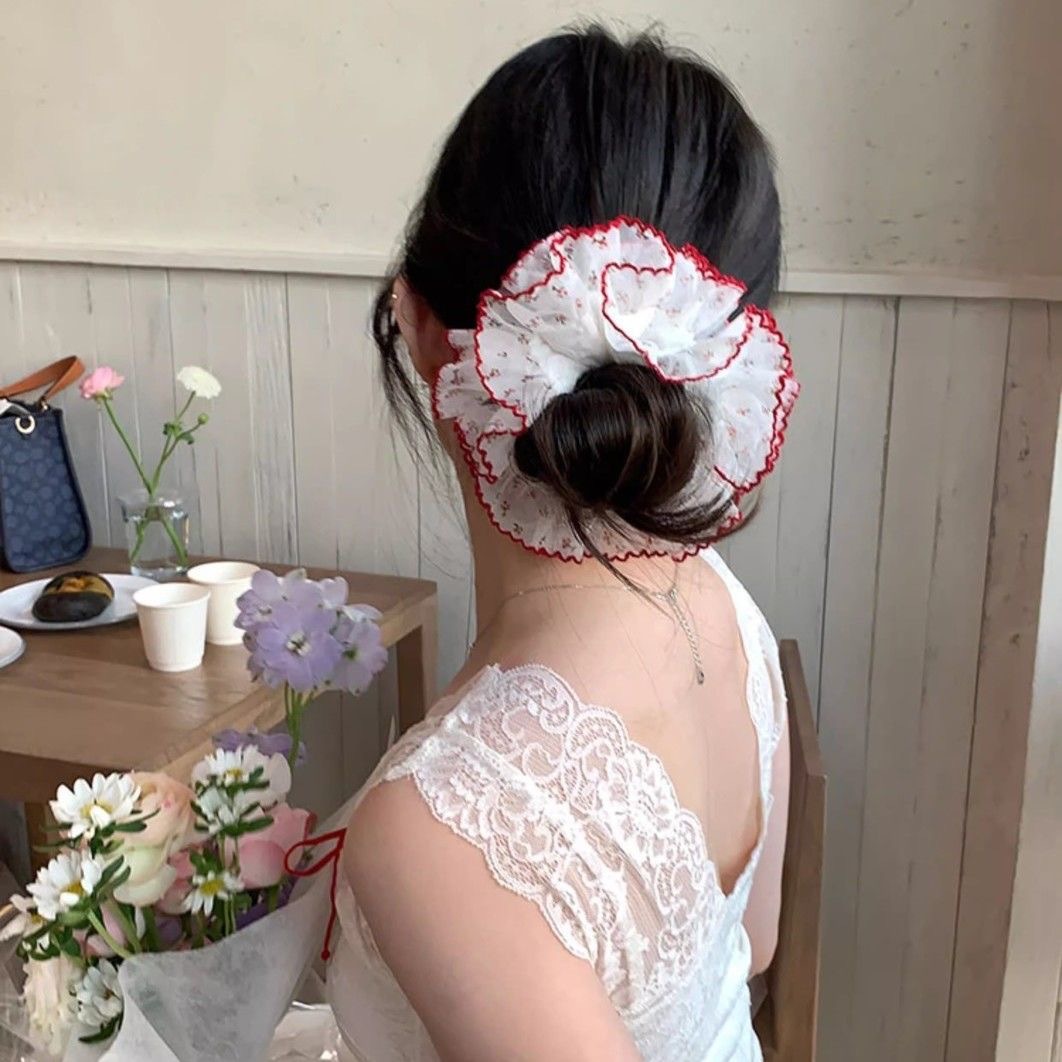 9# White red lace hair band, approximately 14cm