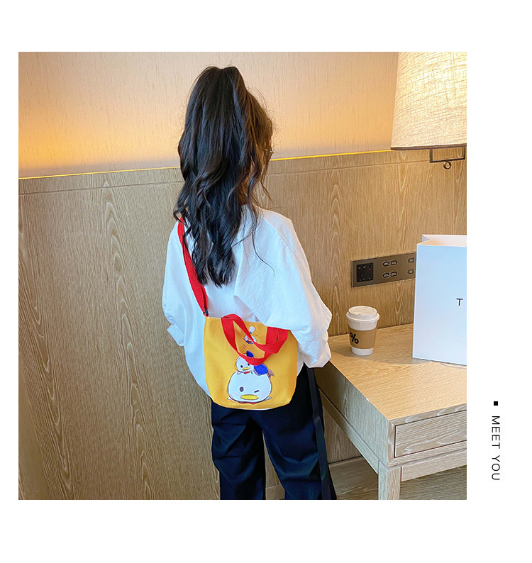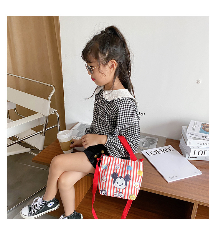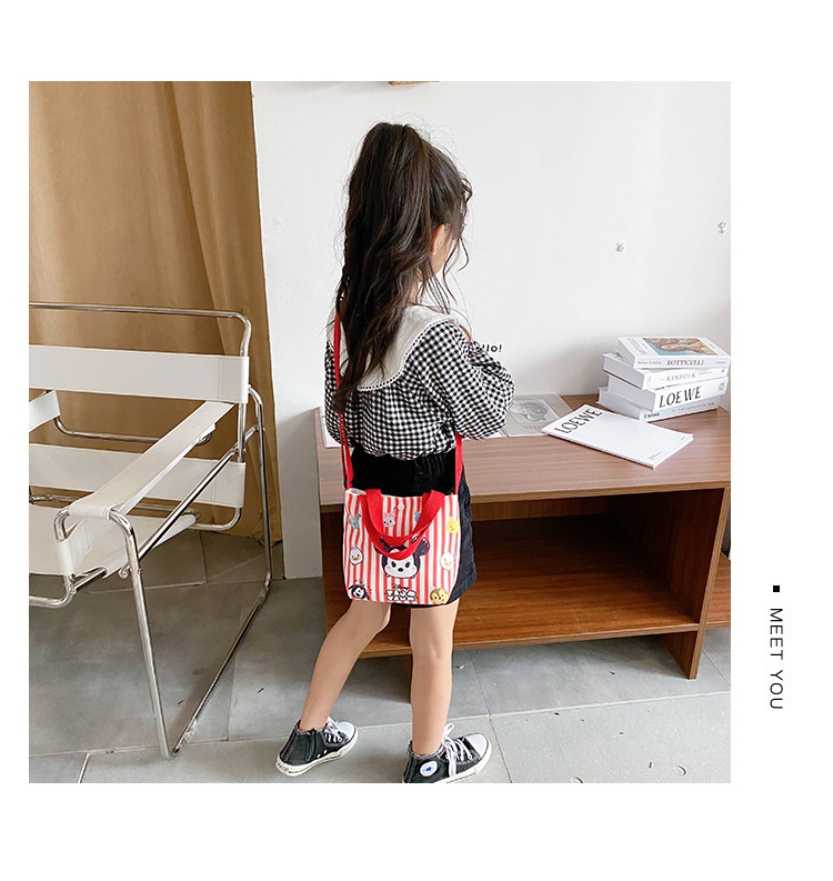 Korean children's bags 2021 New style trendy canvas hand-held shoulder bag, cute cartoon girl crossbody bag, coin purse