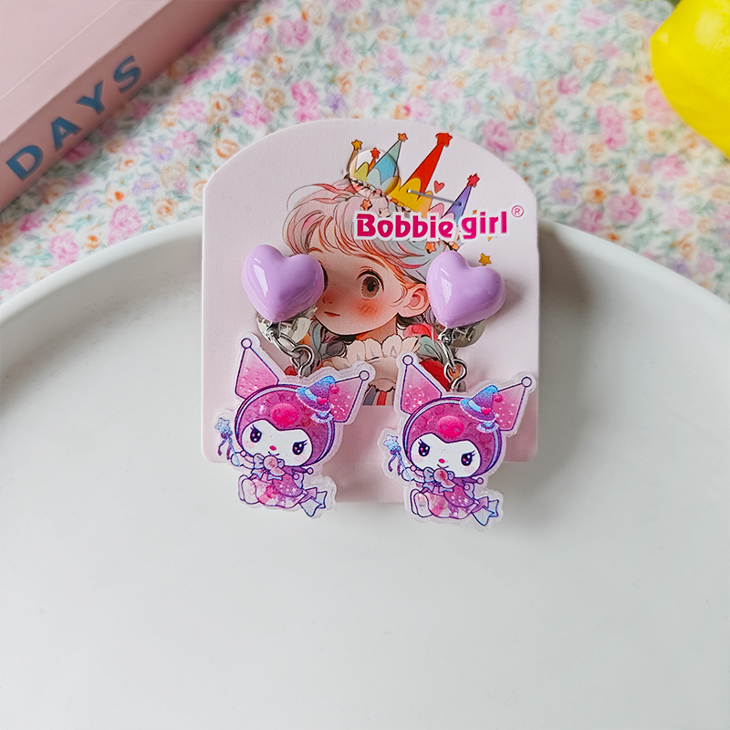 Korean cute cartoon little princess ear clips, children's versatile anti-pinch earrings, acrylic girls' earrings