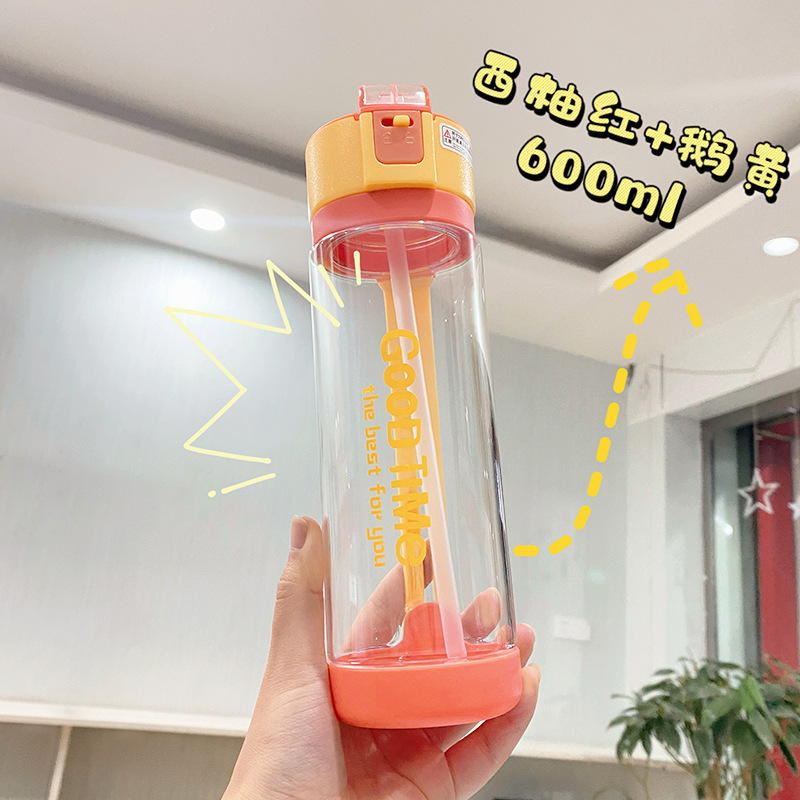 Korean high appearance level couple plastic cups 2021 summer fashionable and trendy color matching straw water cups for women, one-piece consignment