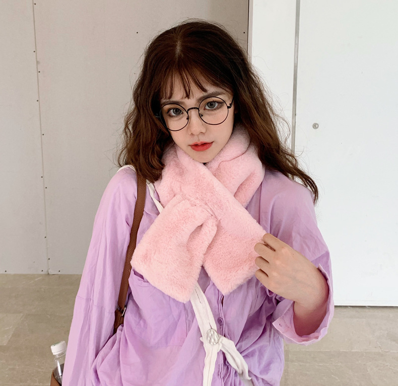 Korean imitation rabbit fur scarves, autumn and winter fur scarves, student fur velvet scarves, winter women's pullover for cold protection and outdoor use