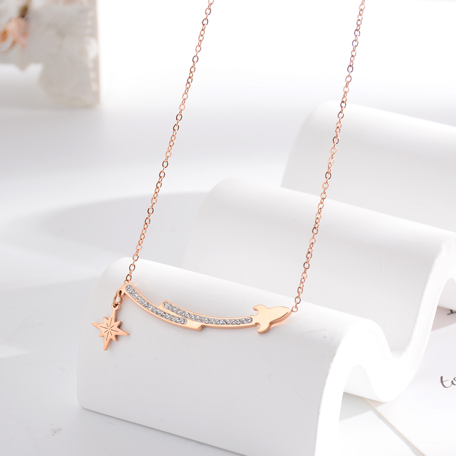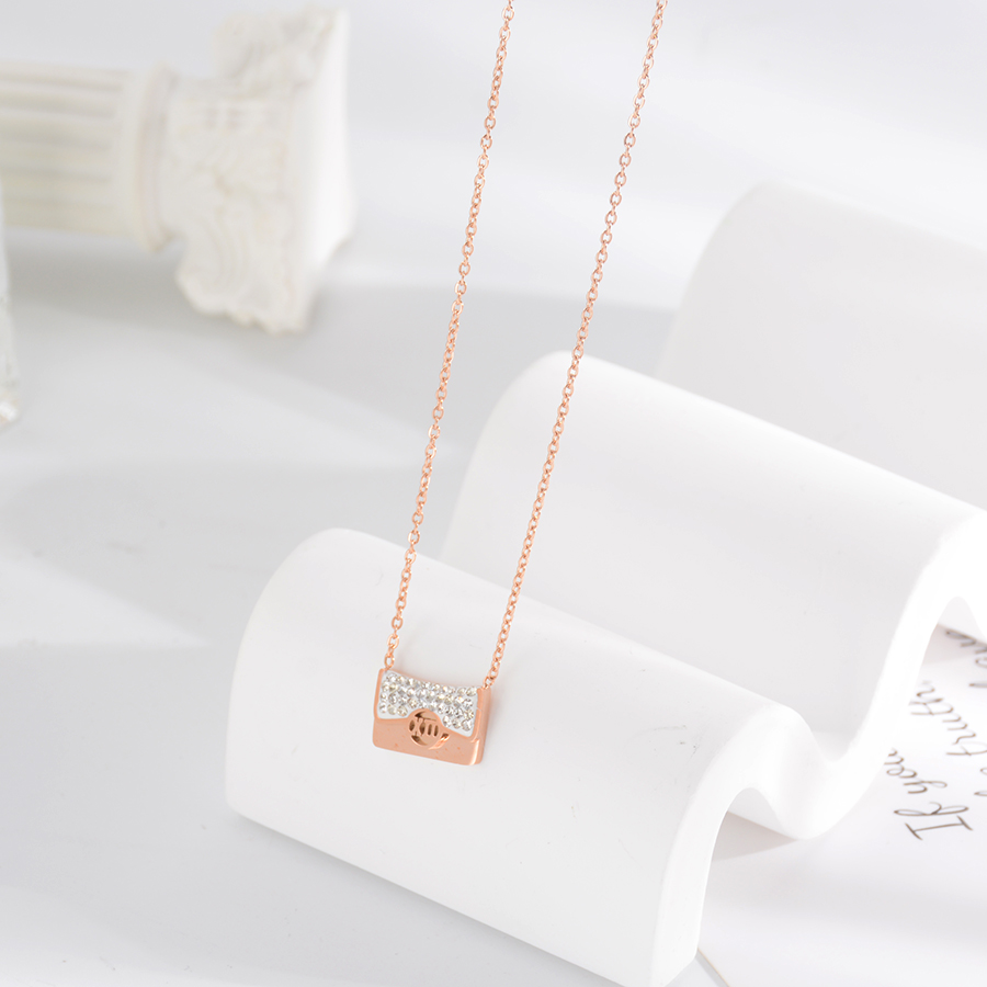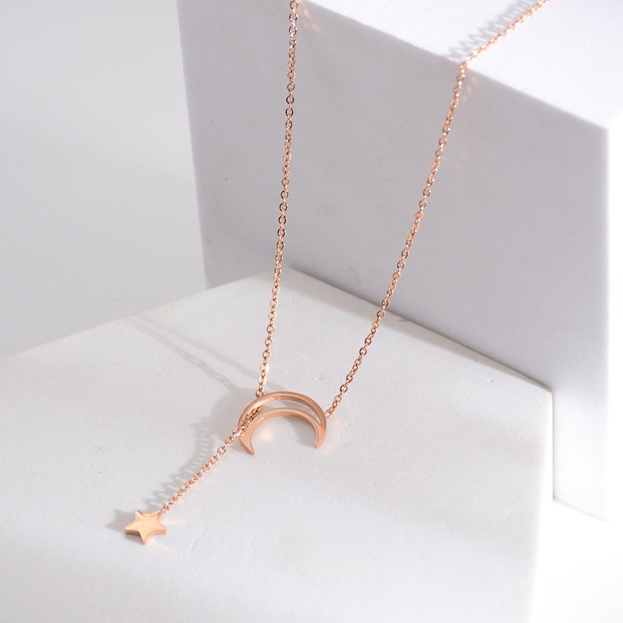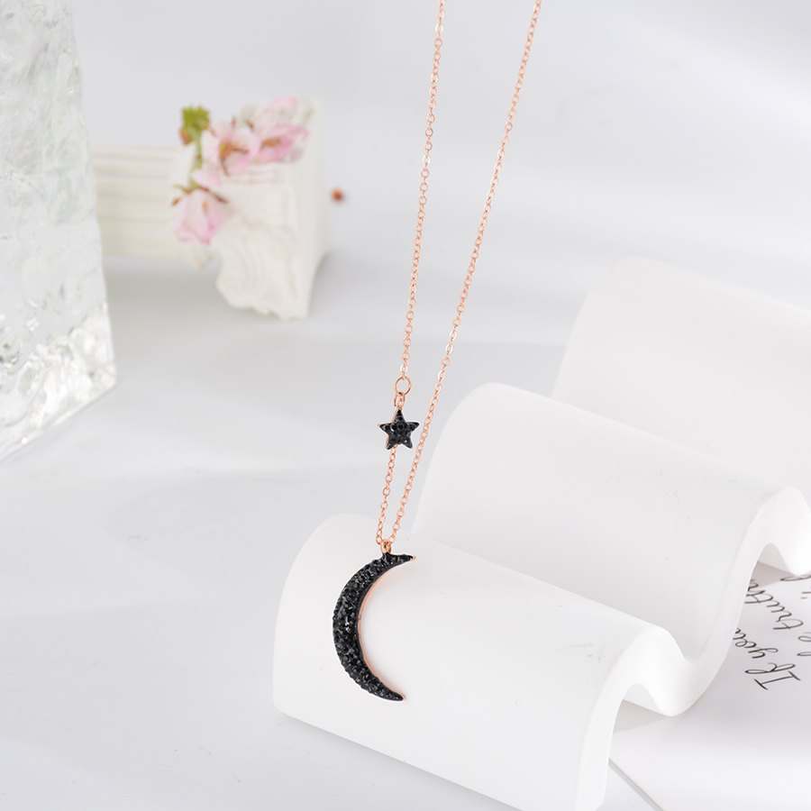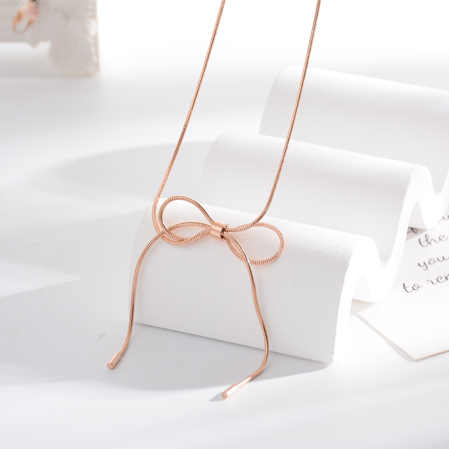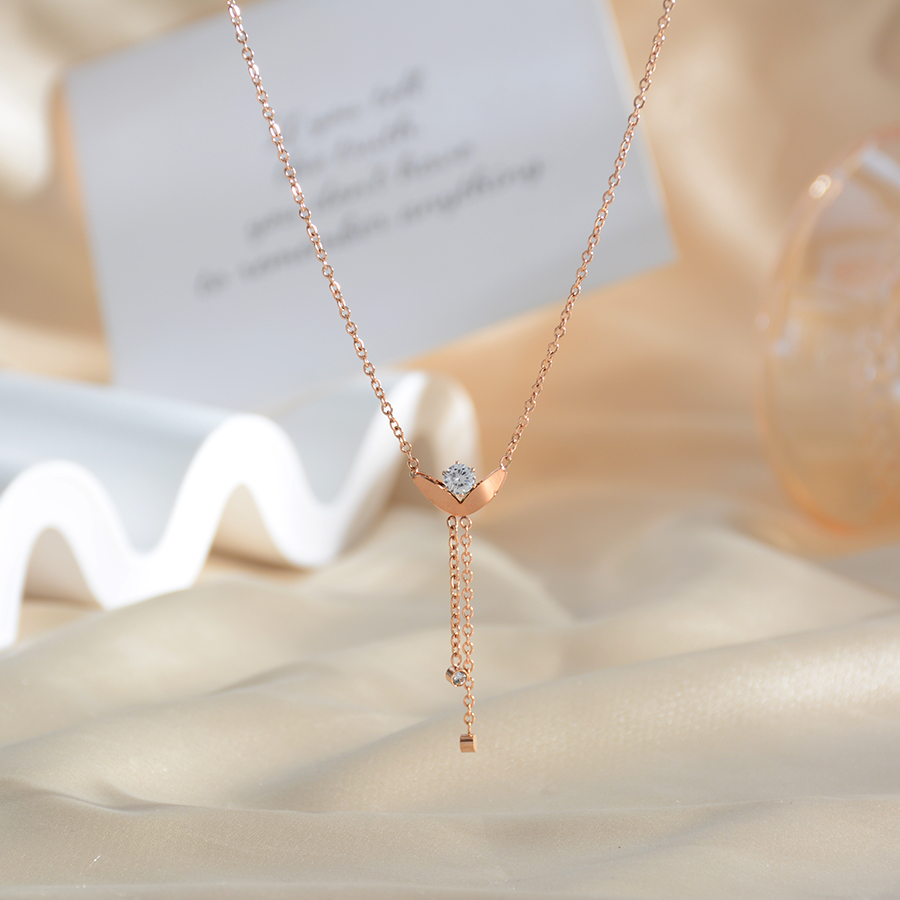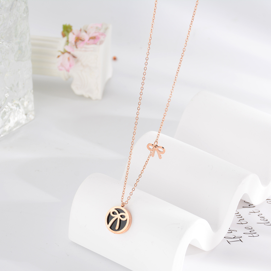 Korean internet-famous bestseller, elegant and timeless titanium steel necklace, bow with diamond, moon collarbone chain, rose gold accessory, exquisite gift