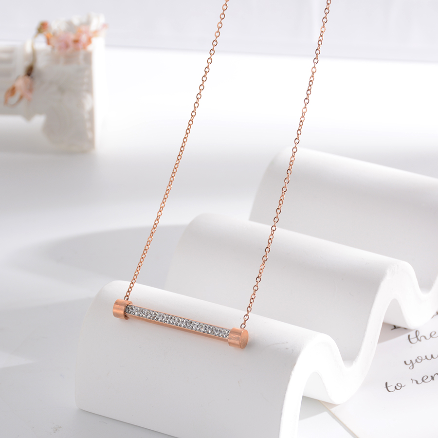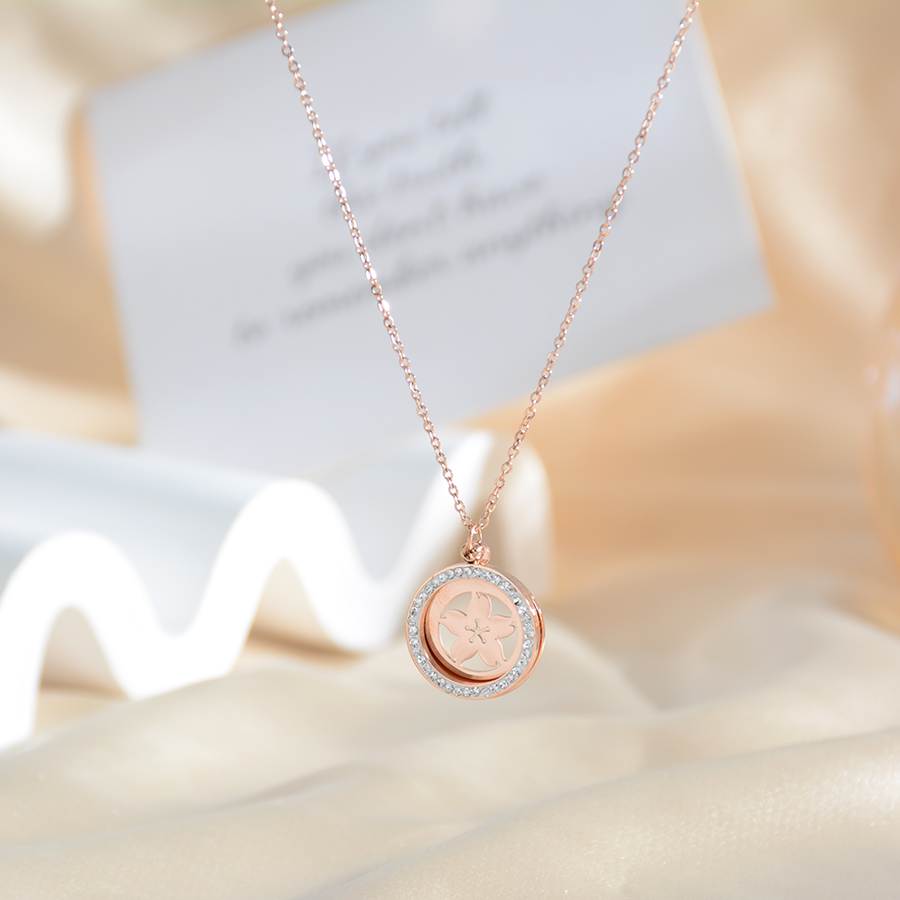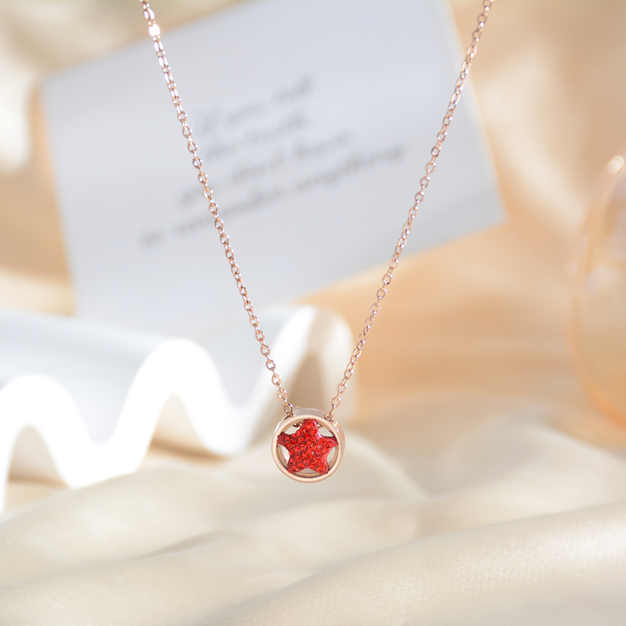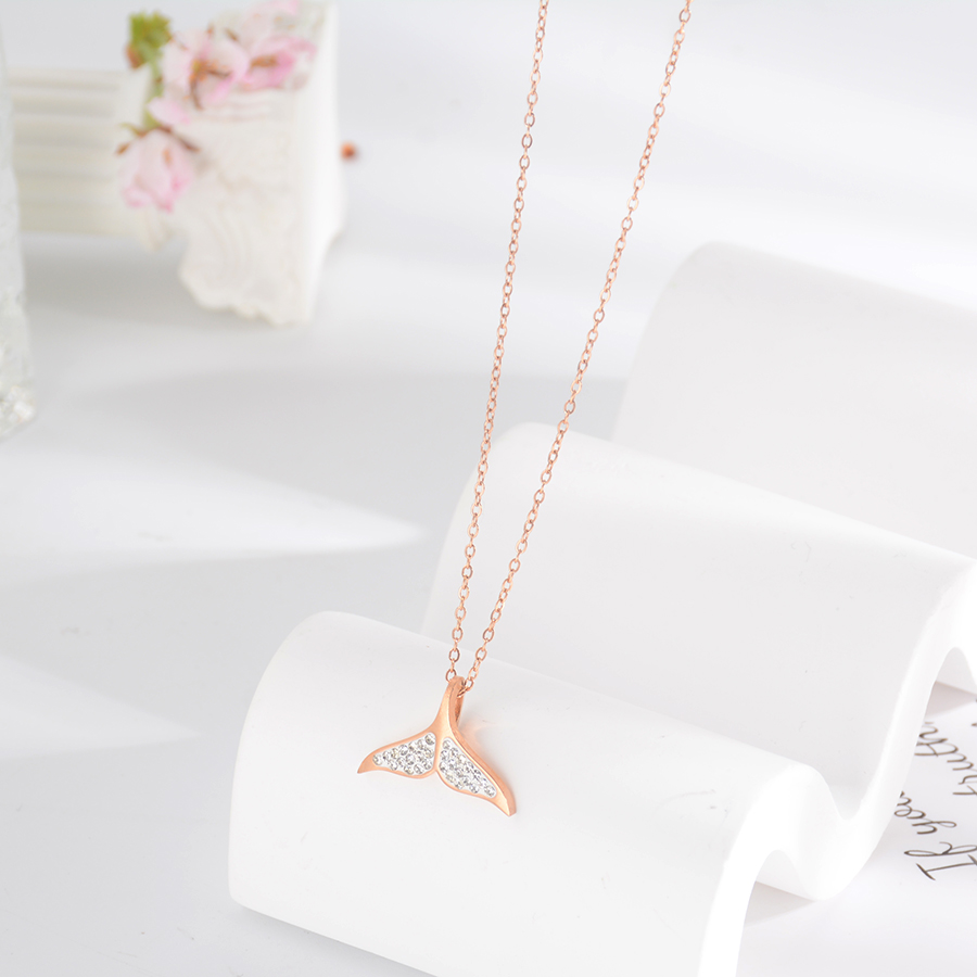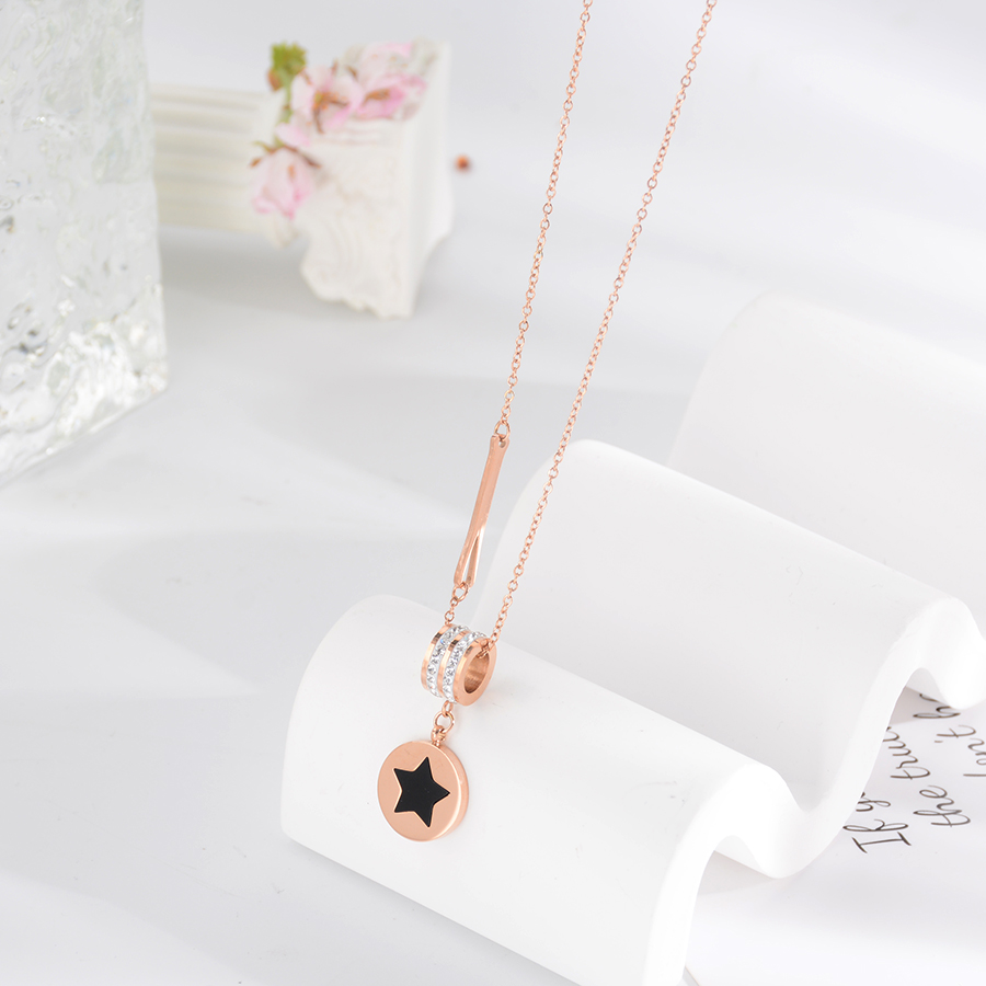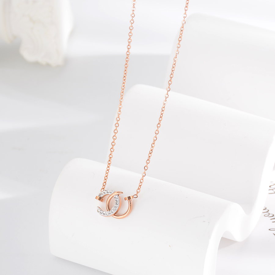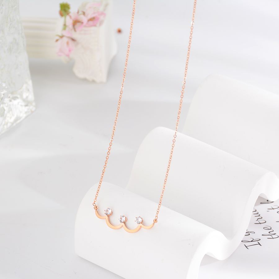 Korean internet-famous bestseller, elegant and timeless titanium steel necklace, bow with diamond, moon collarbone chain, rose gold accessory, exquisite gift