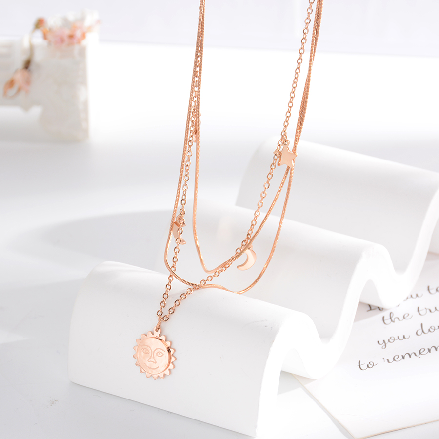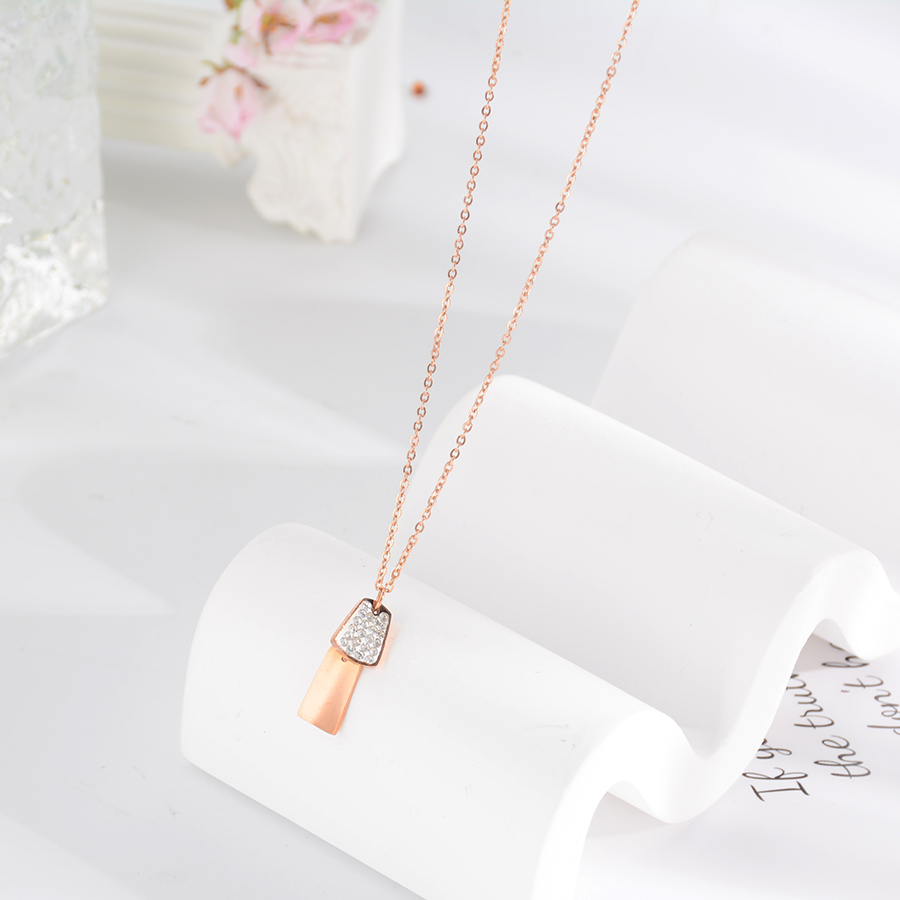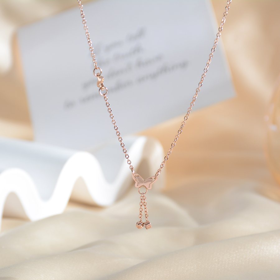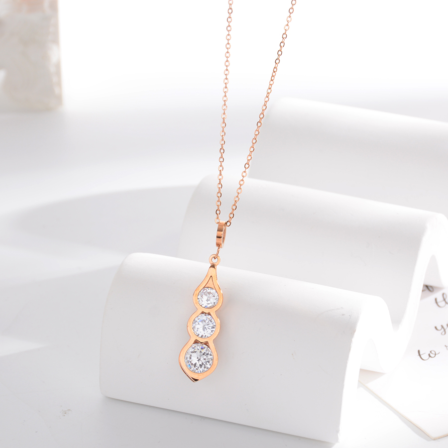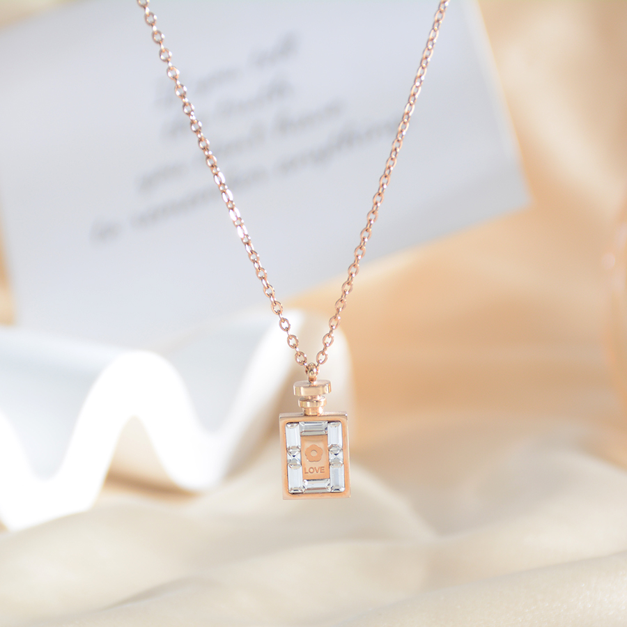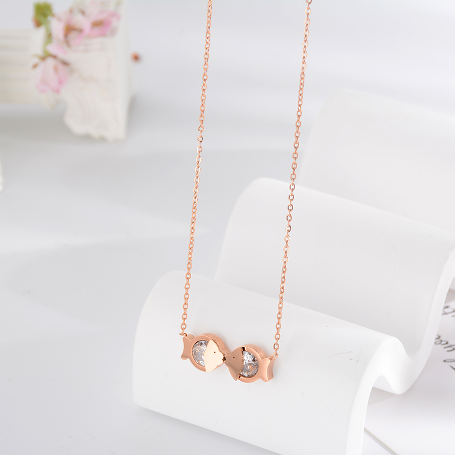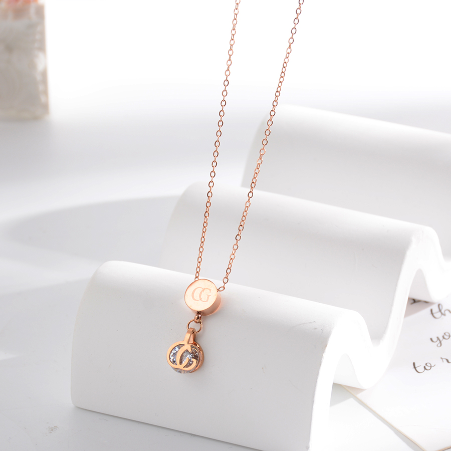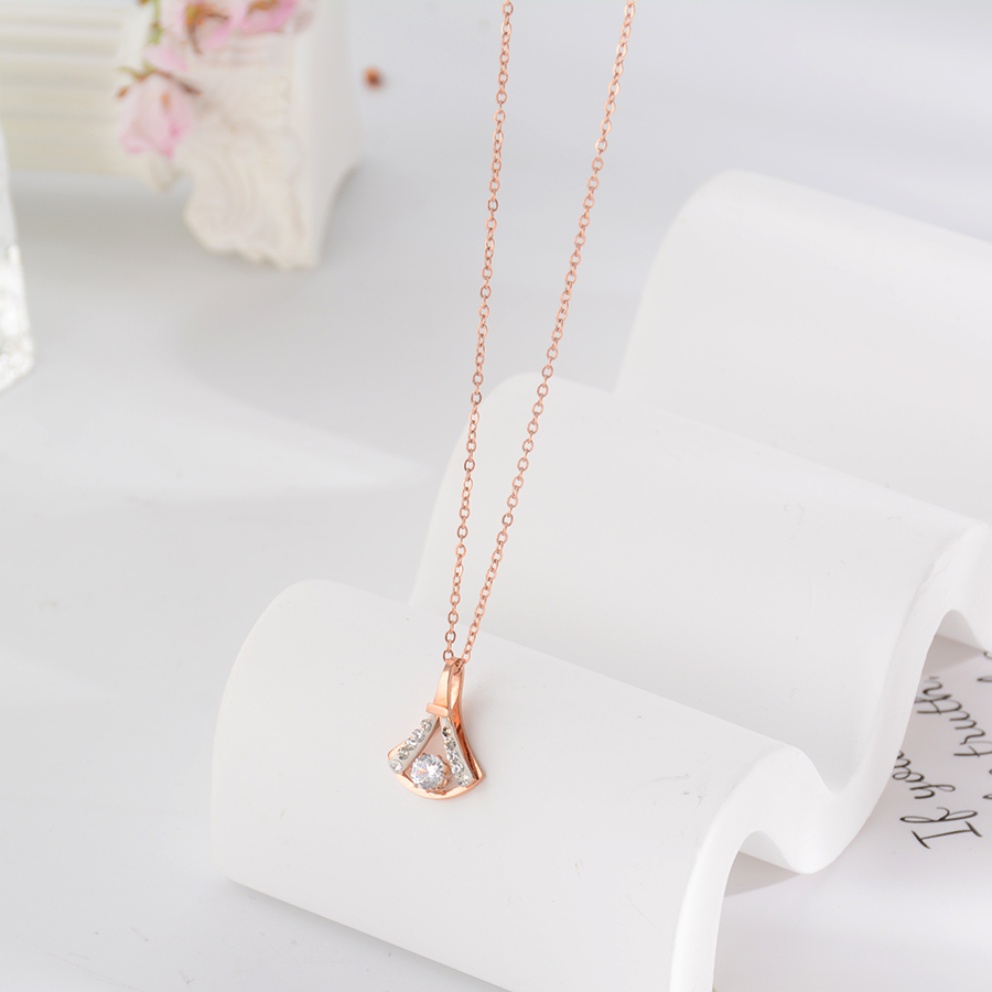 Korean internet-famous bestseller, elegant and timeless titanium steel necklace, bow with diamond, moon collarbone chain, rose gold accessory, exquisite gift