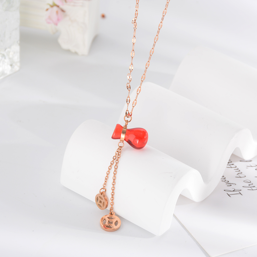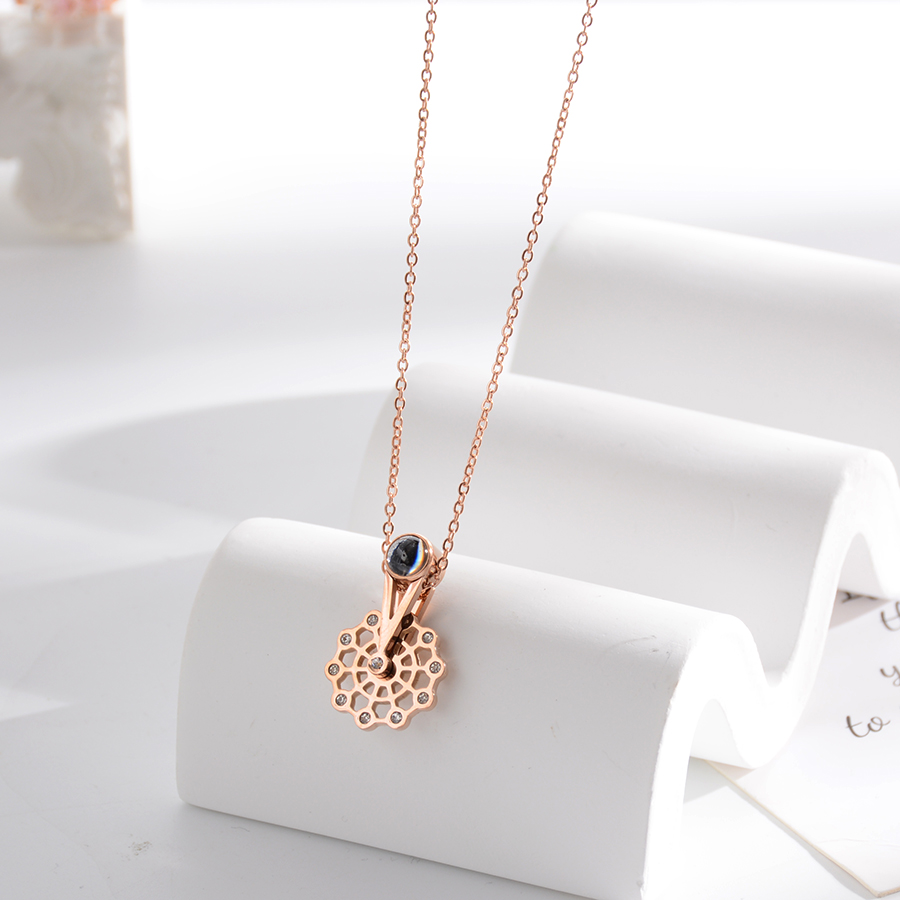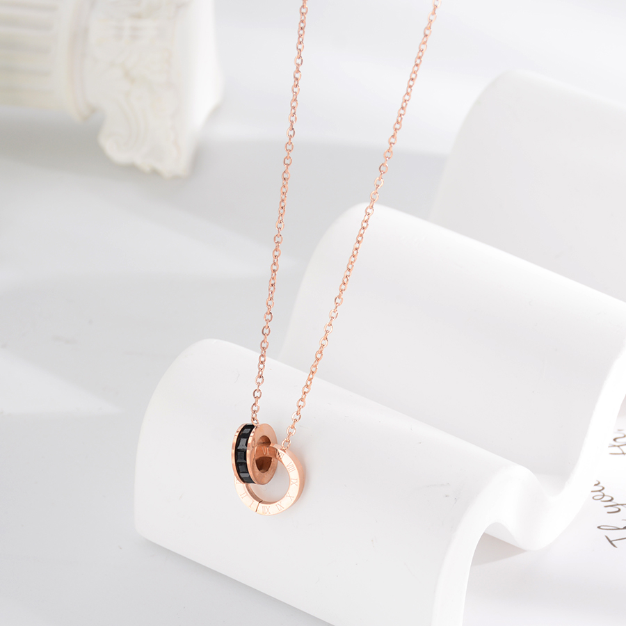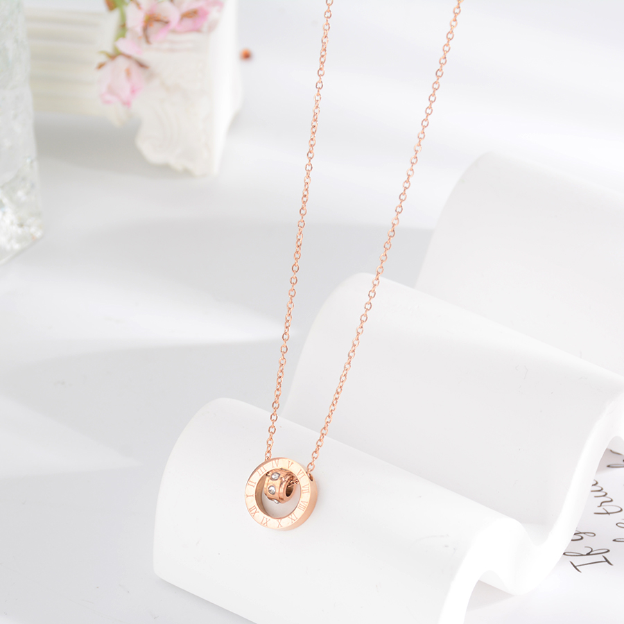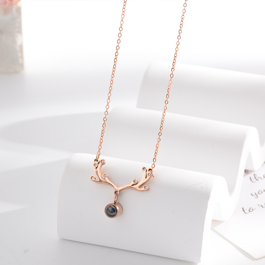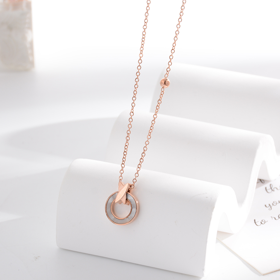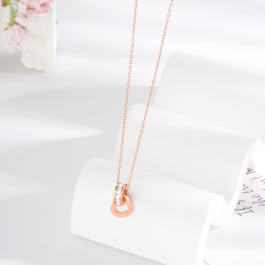 Korean internet-famous bestseller, elegant and timeless titanium steel necklace, bow with diamond, moon collarbone chain, rose gold accessory, exquisite gift