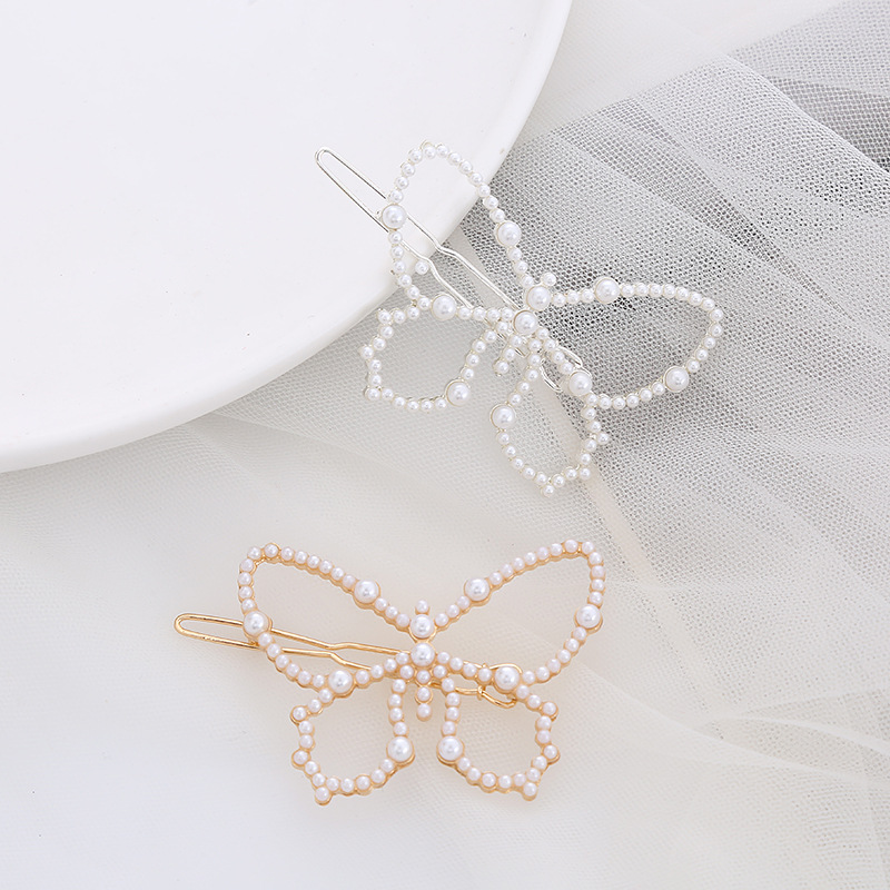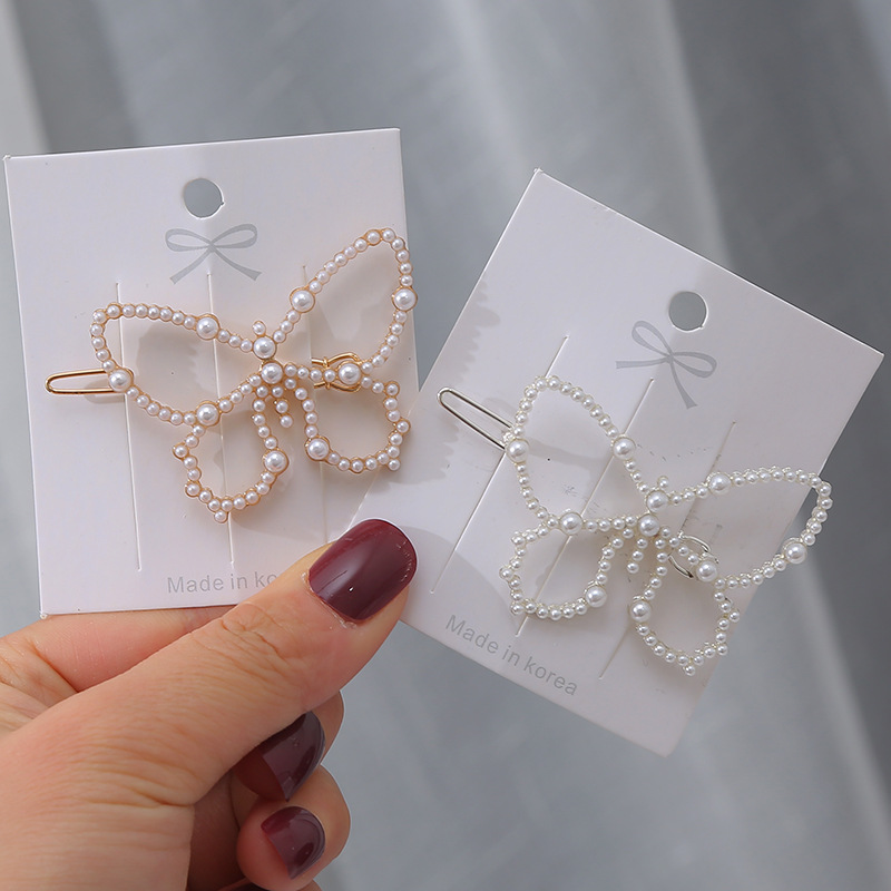 Korean pearl hairpins, women's side hair clips, broken clips, bangs, forehead frog buttons, girl's hair, butterfly, super fairy-like hairpins