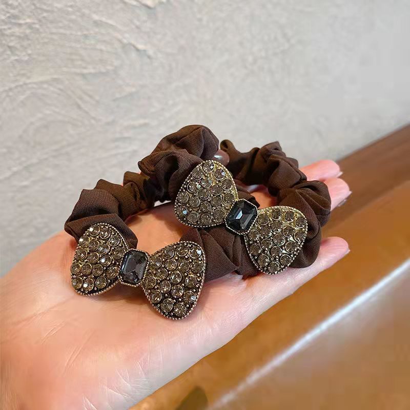 Korean retro and fashionable large intestine hair band, bow, crystal full diamond hair tie, women's hair tie, hair-safe leather band headwear