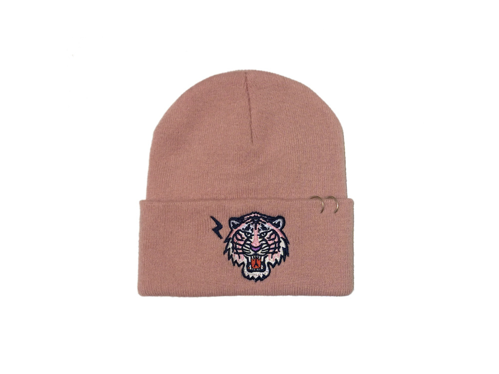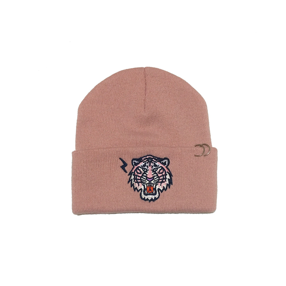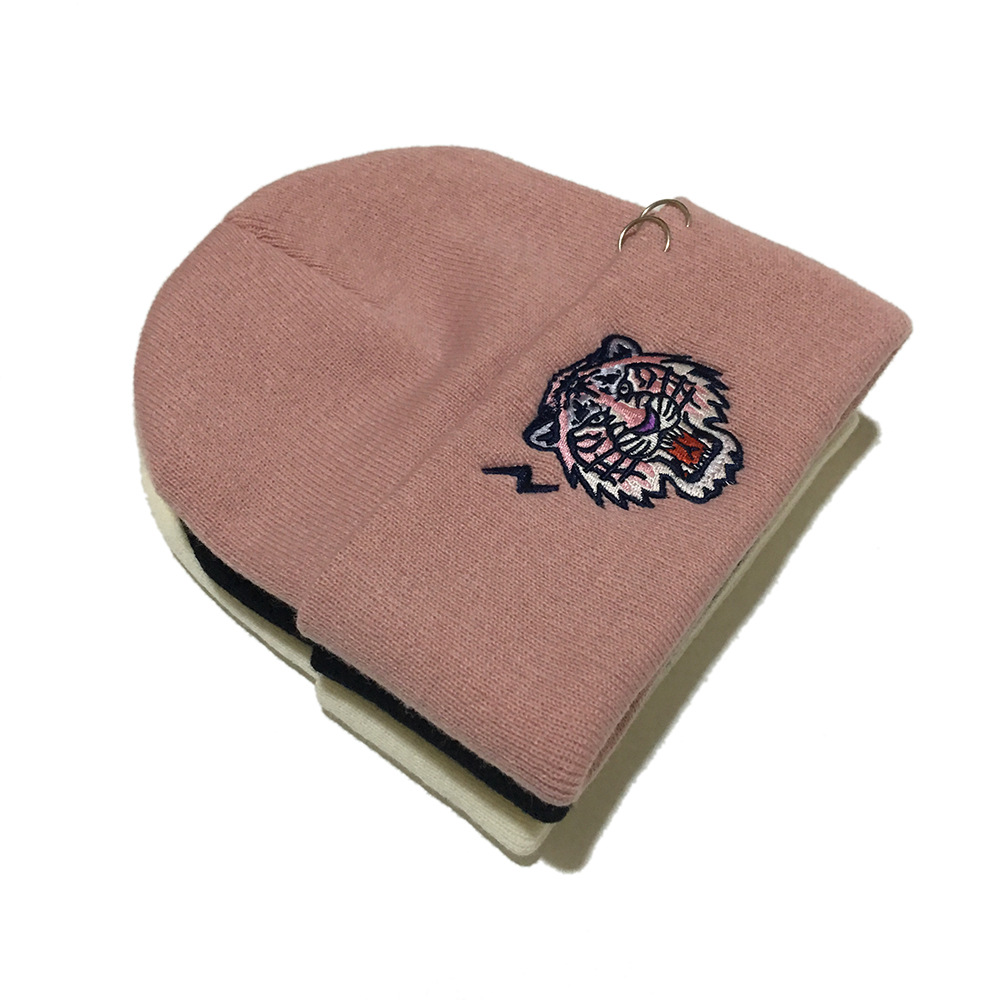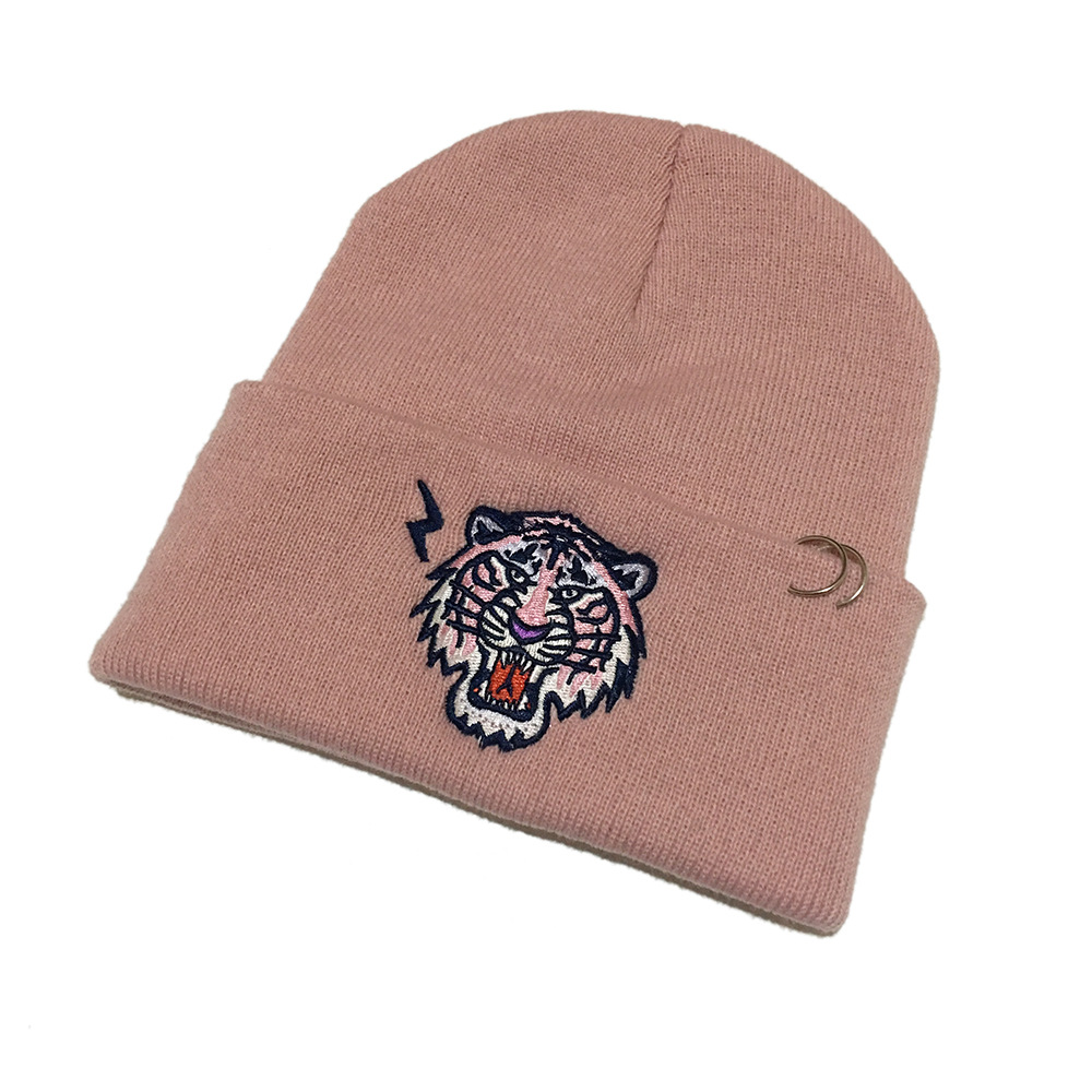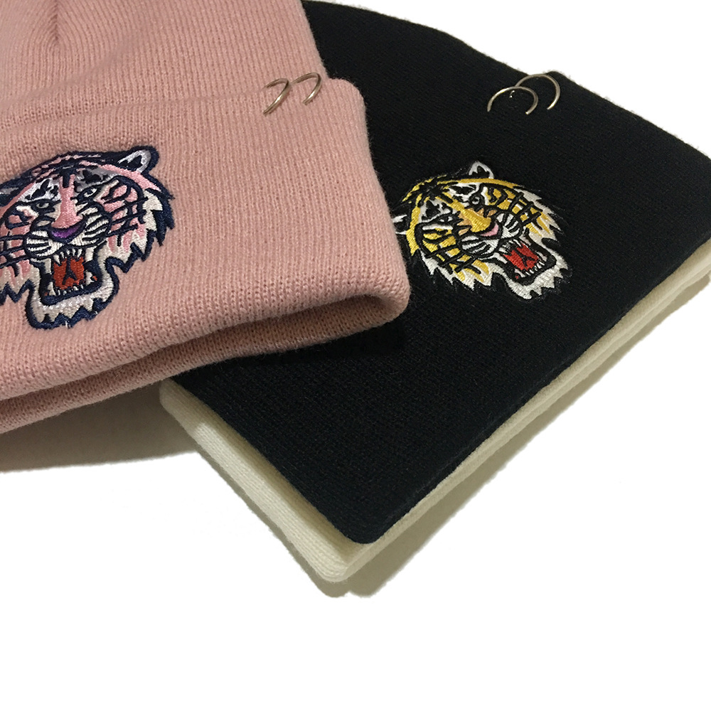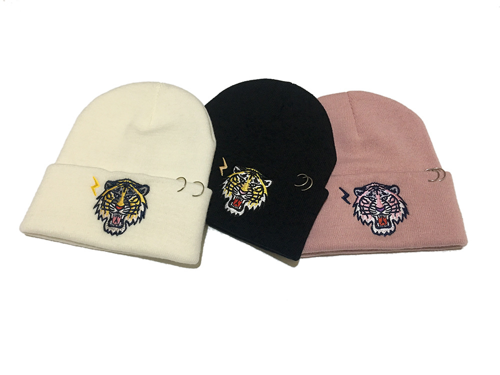 Korean streetwear brand tiger head embroidered couple's iron ring knitted woolen hats, versatile and warm couple hats, cold hats