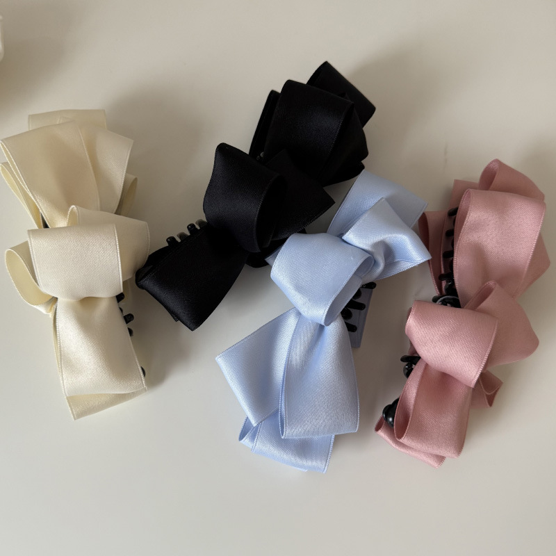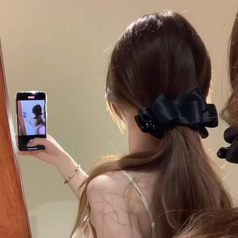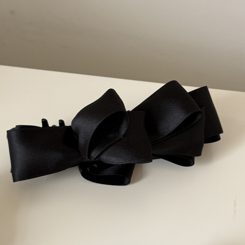 Korean-style black satin bow banana clip, women's back head claw clip, ponytail clip, vertical clip, hair accessory, hairpin, hair accessory