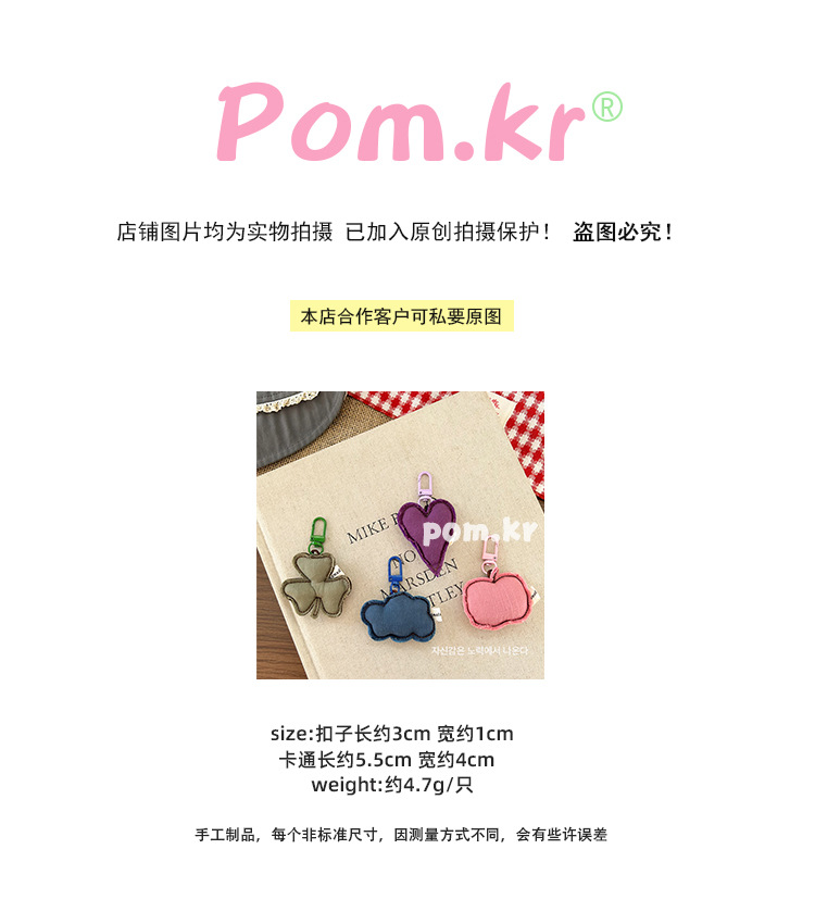 Korean-style cartoon cute apple fabric pendant, colorful keychain, children's versatile clothes, bags, mobile phone chain buckle