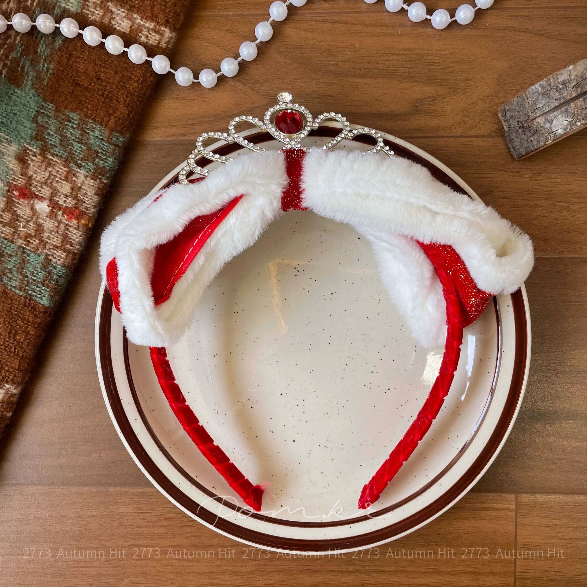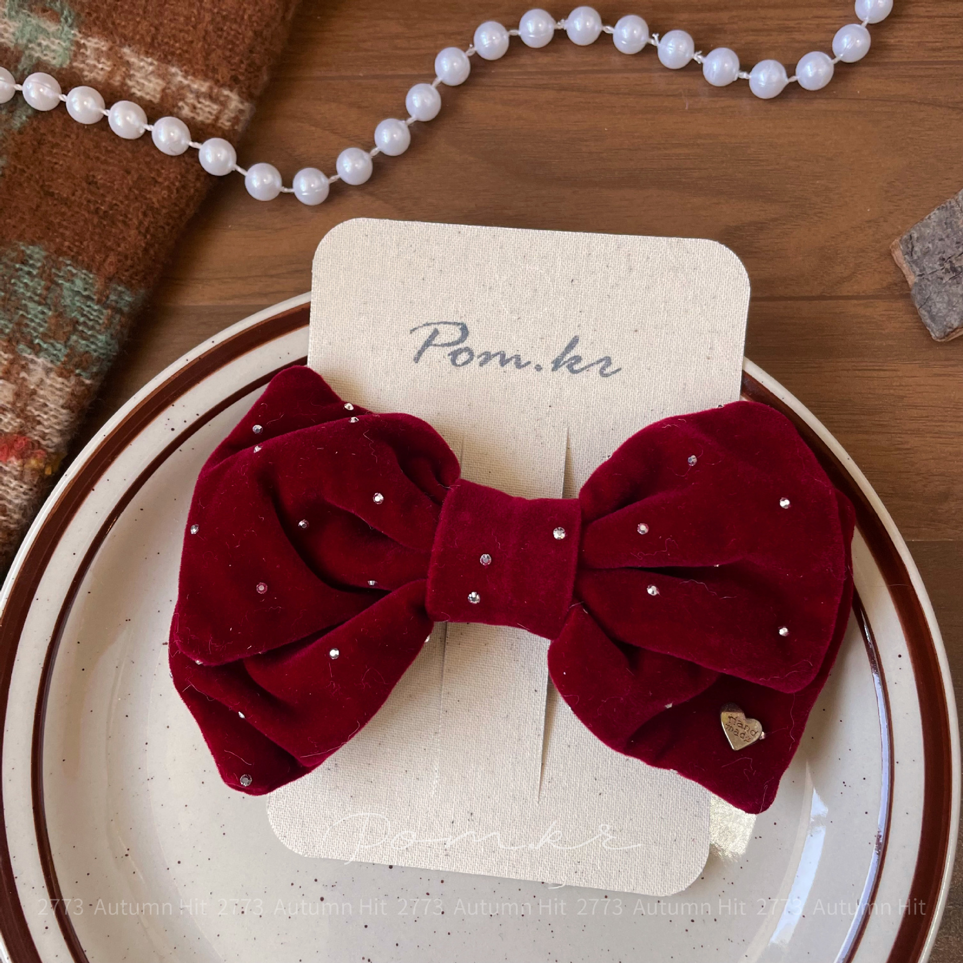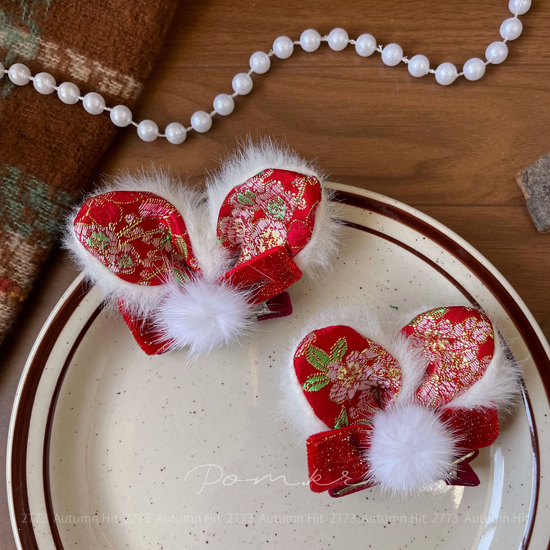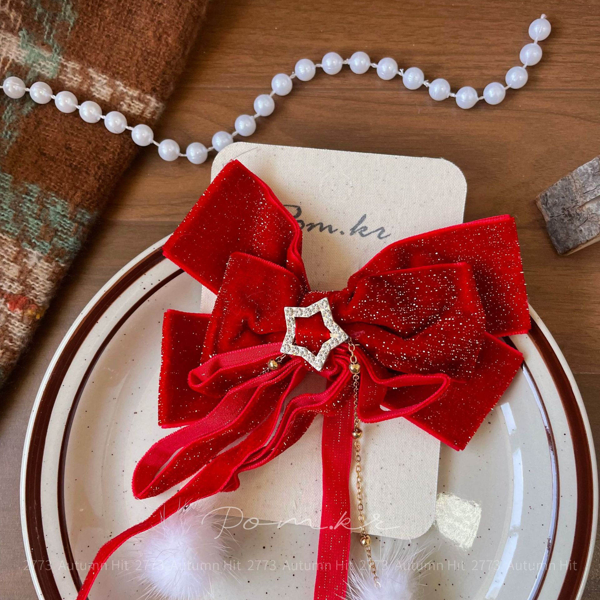 Korean-style children's red textured velvet fabric bow hair clips, girls' plush ball hair bands, hair bands, girls' hair accessories