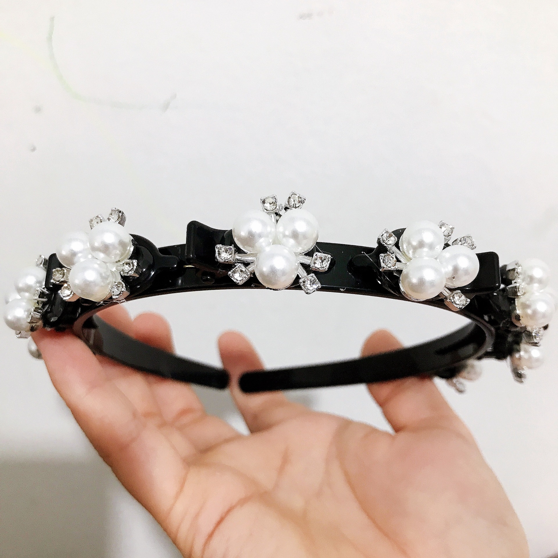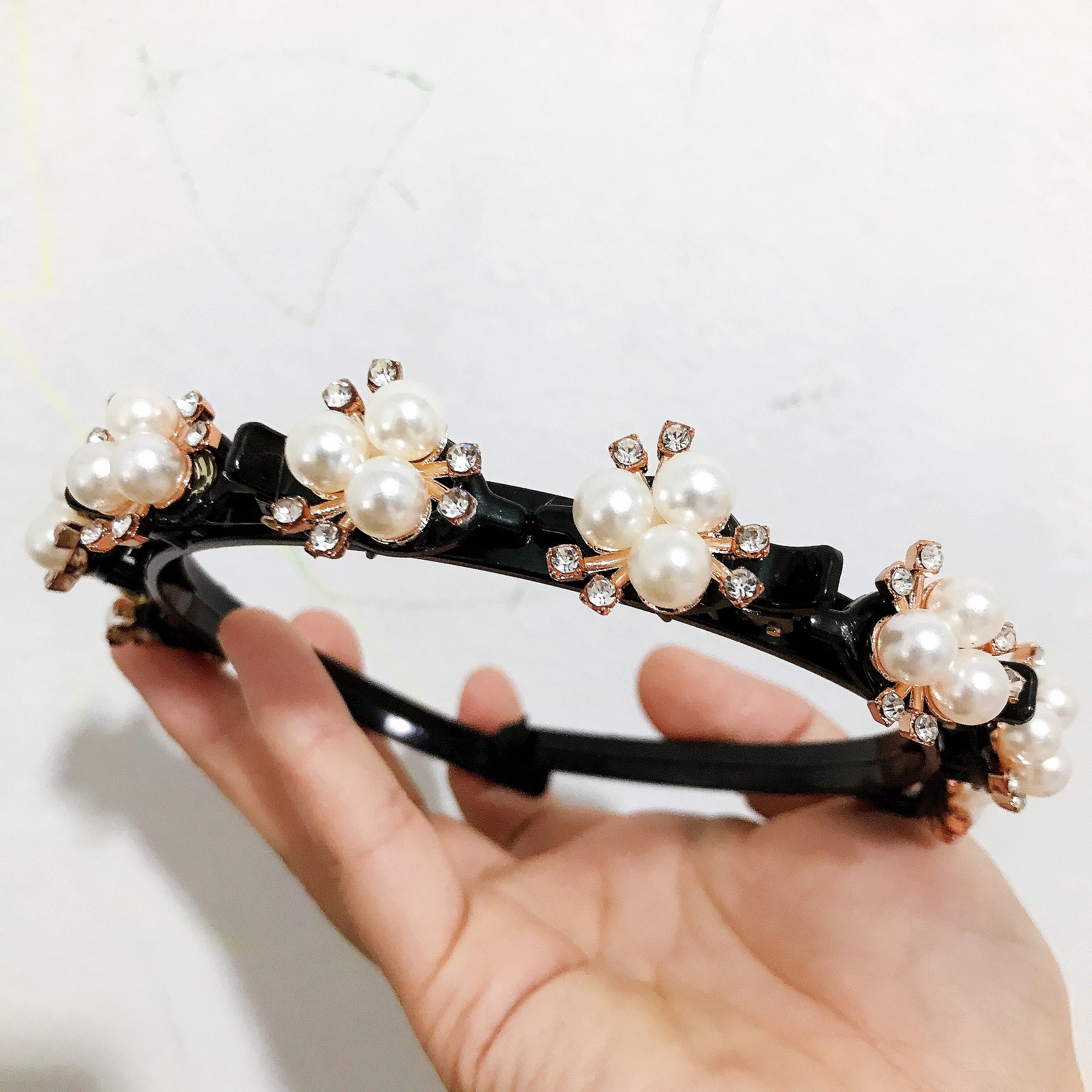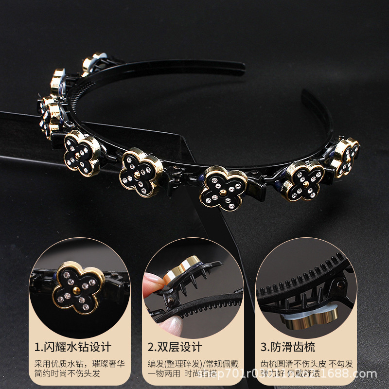 Korean-style fashionable multi-layered woven pearl hair bands with compartments, small braided hair clamps, and trendy hair tie hair accessories
