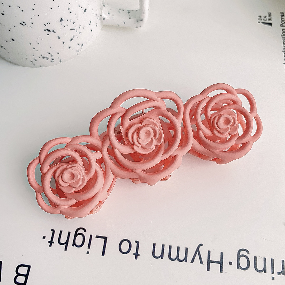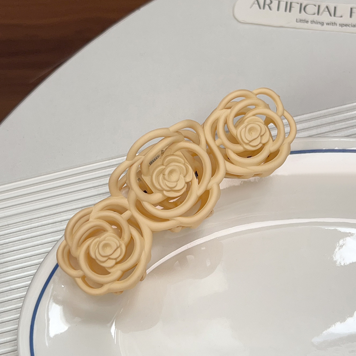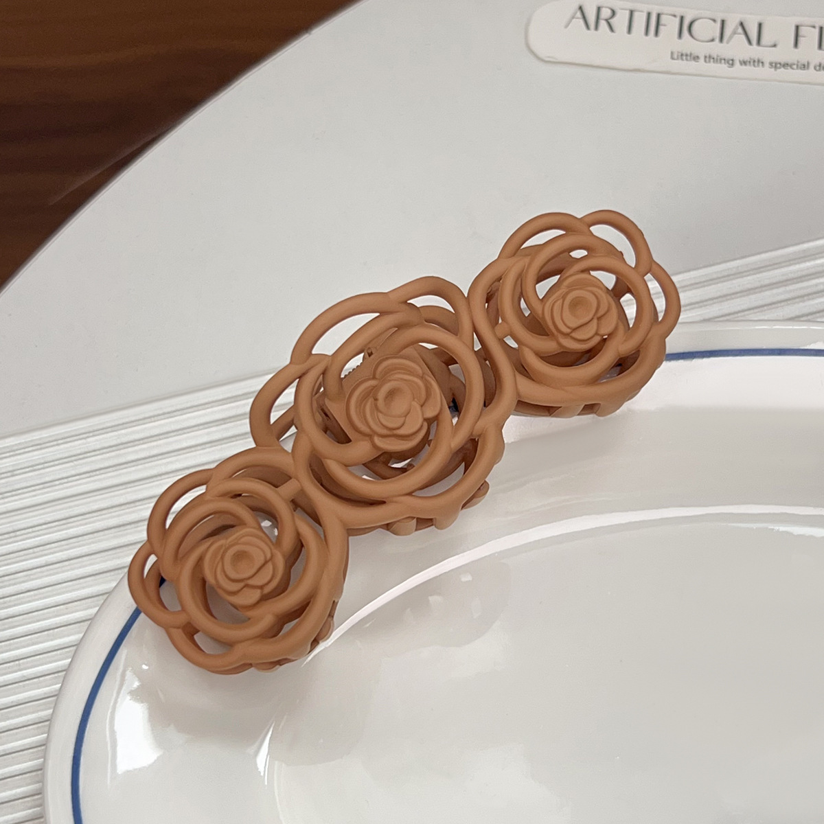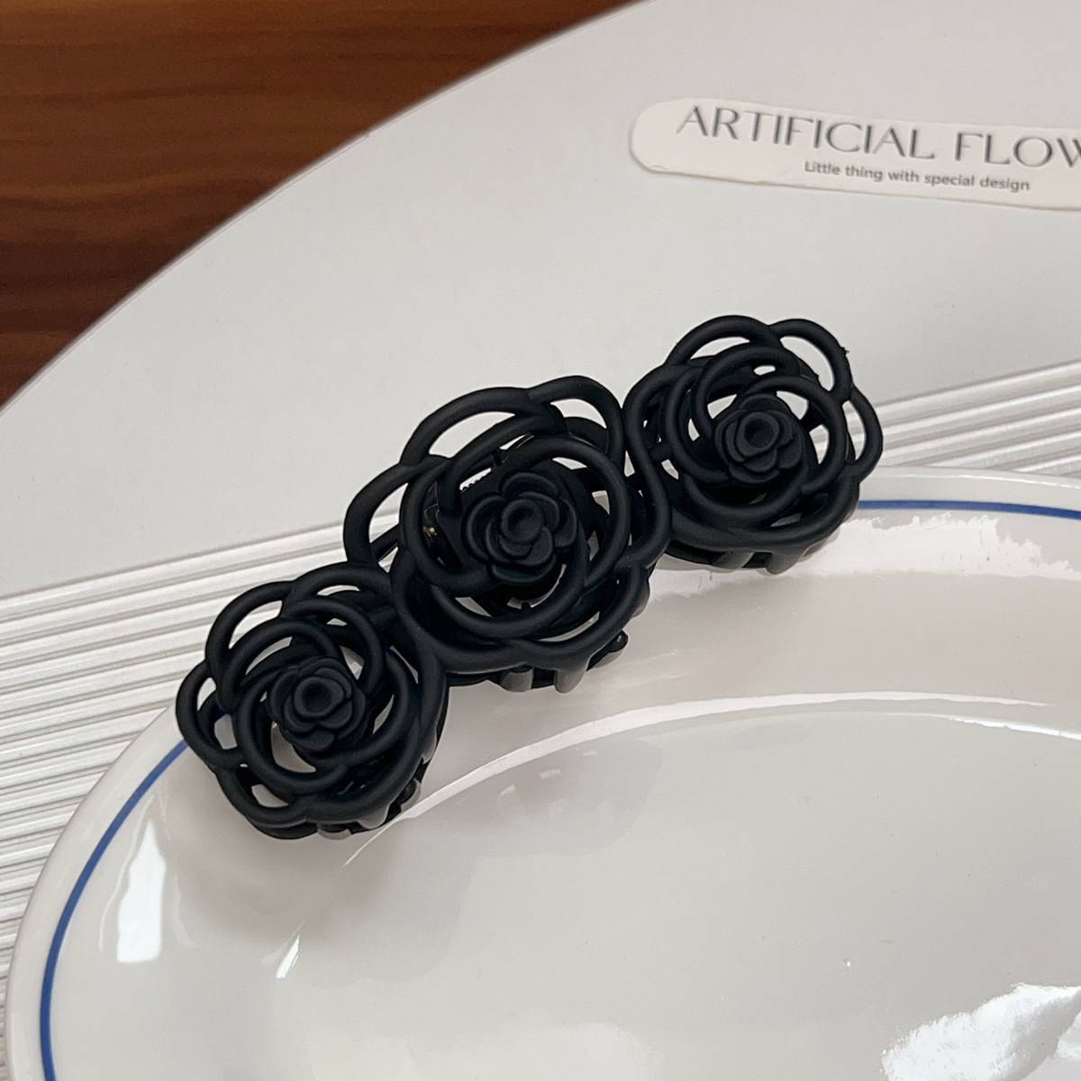 Korean-style frosted and holloomed camellia hairpin, flower hairpin, large shark hairpin, back of the head, updo hairpin, hairpin for women