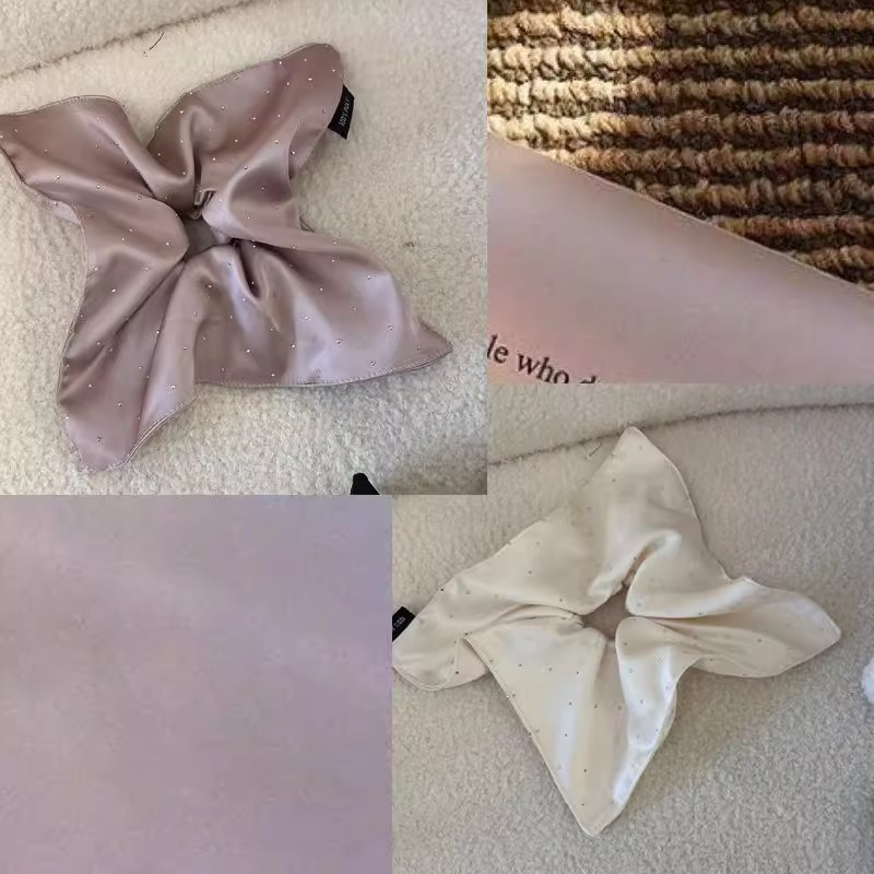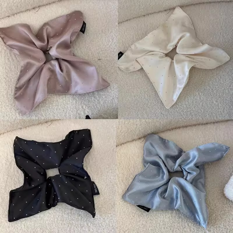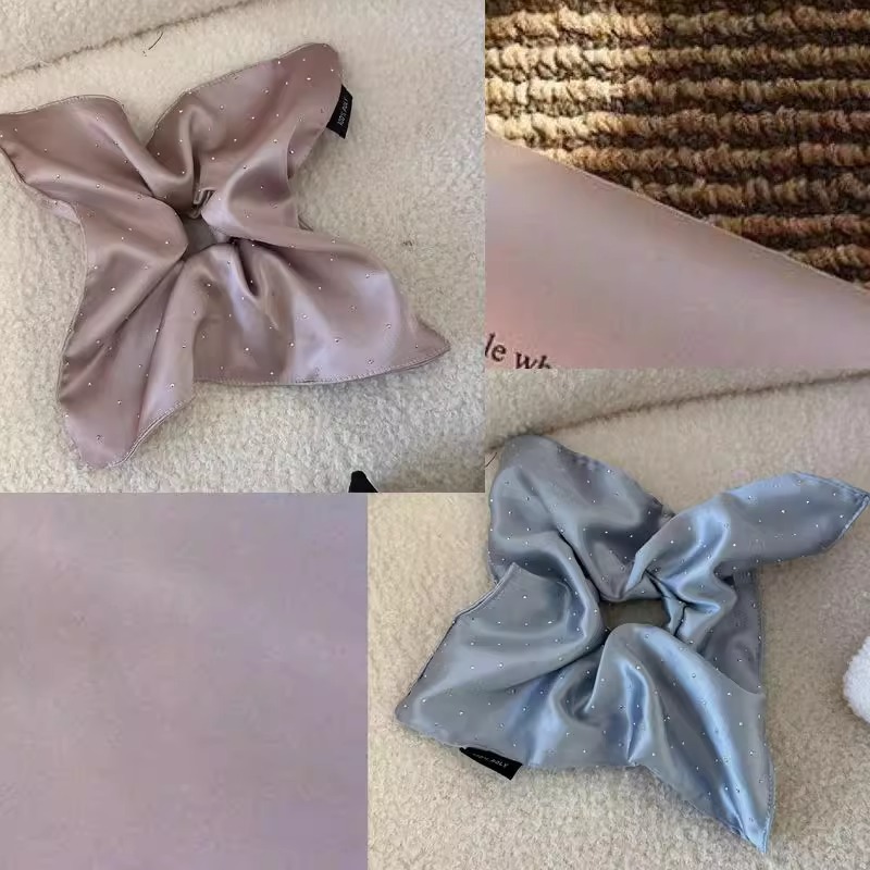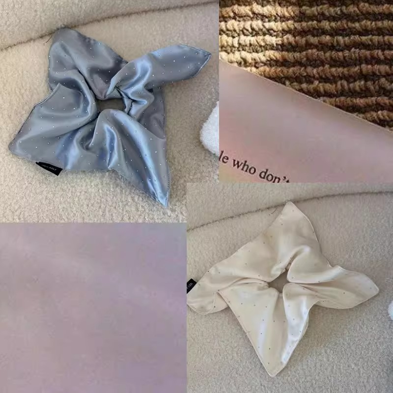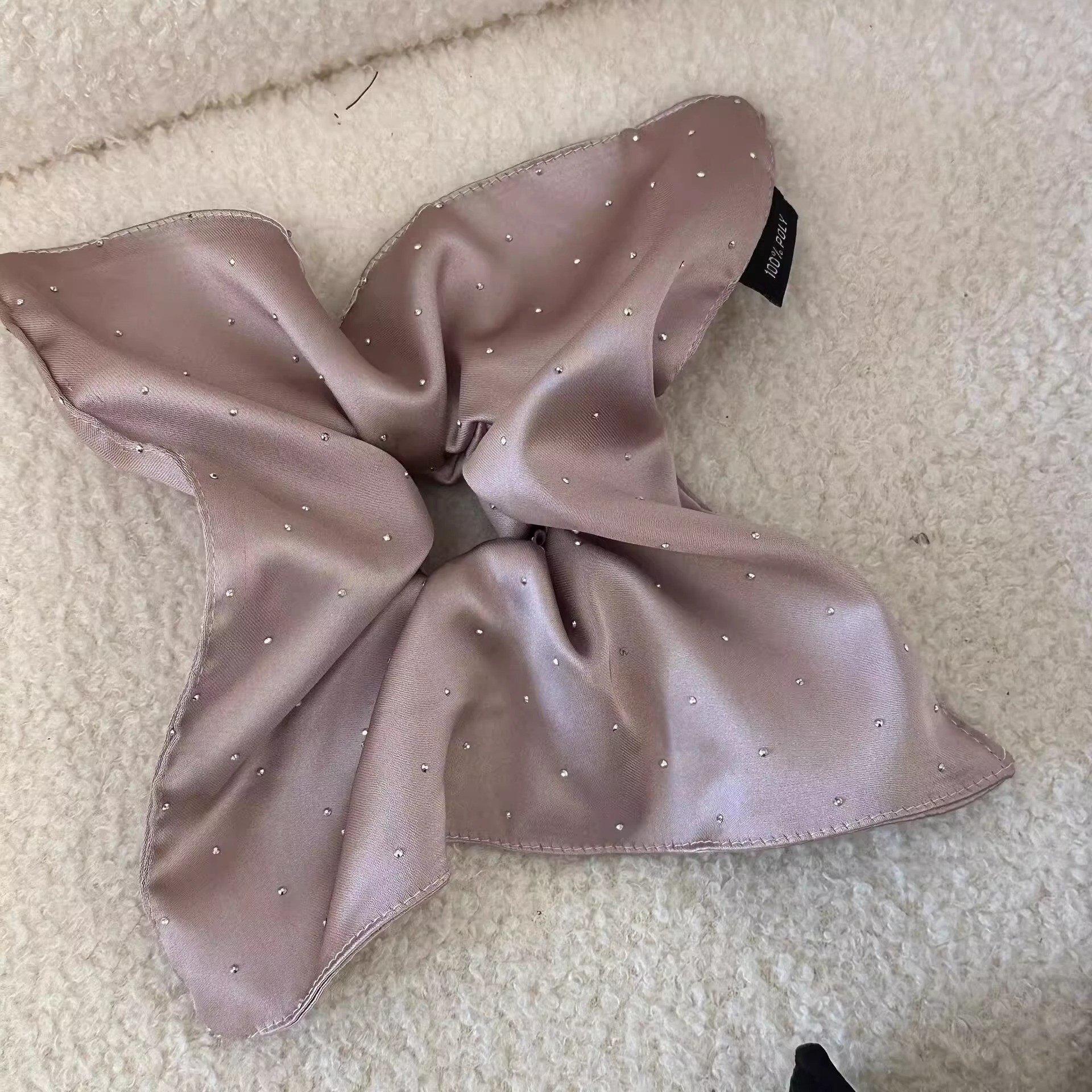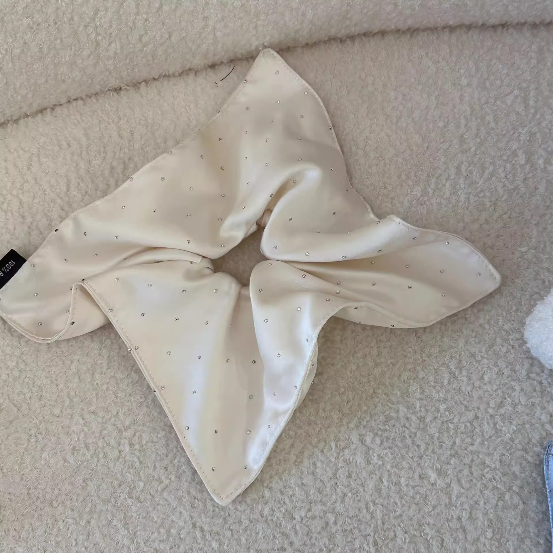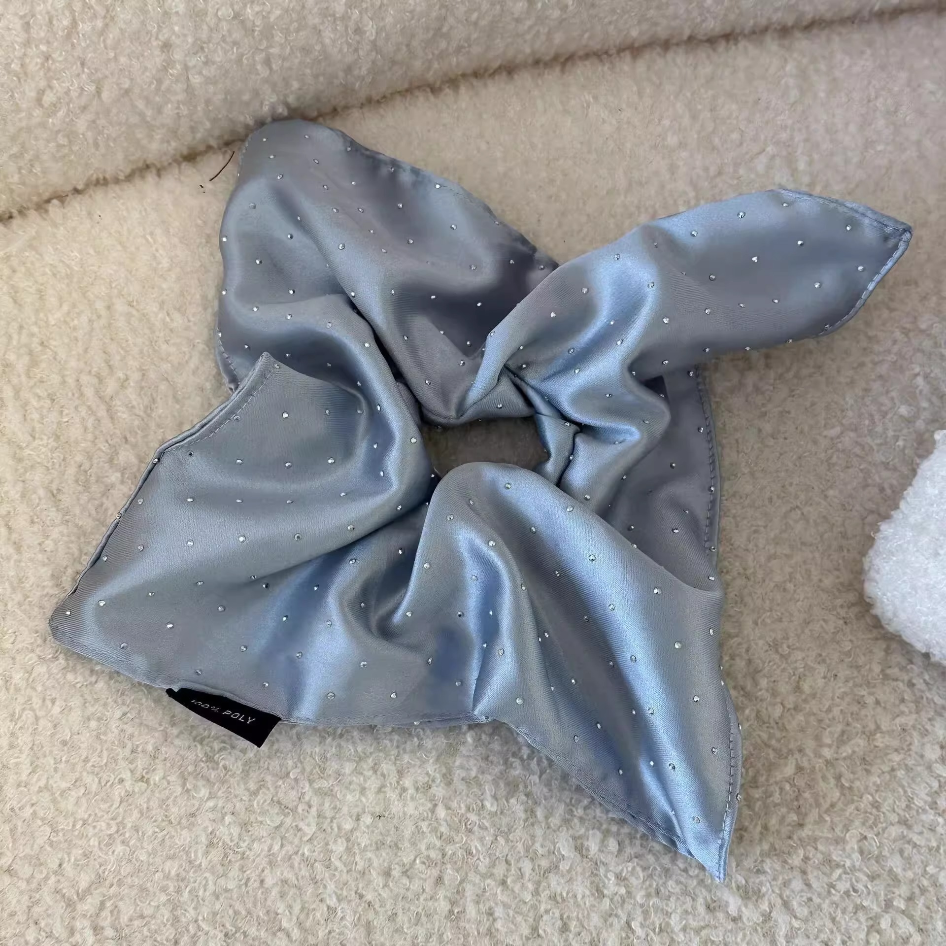 Korean-style full sky star satin square scarf, large intestinal hair band, solid color, elegant and high-end style, hair tie tied in a ponytail, versatile hair tie for girls