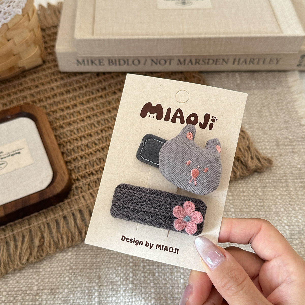 Korean-style gray and pink fabric cute cartoon rabbit children's hair clip, sweet and versatile girl fringe seaside hair clip accessory
