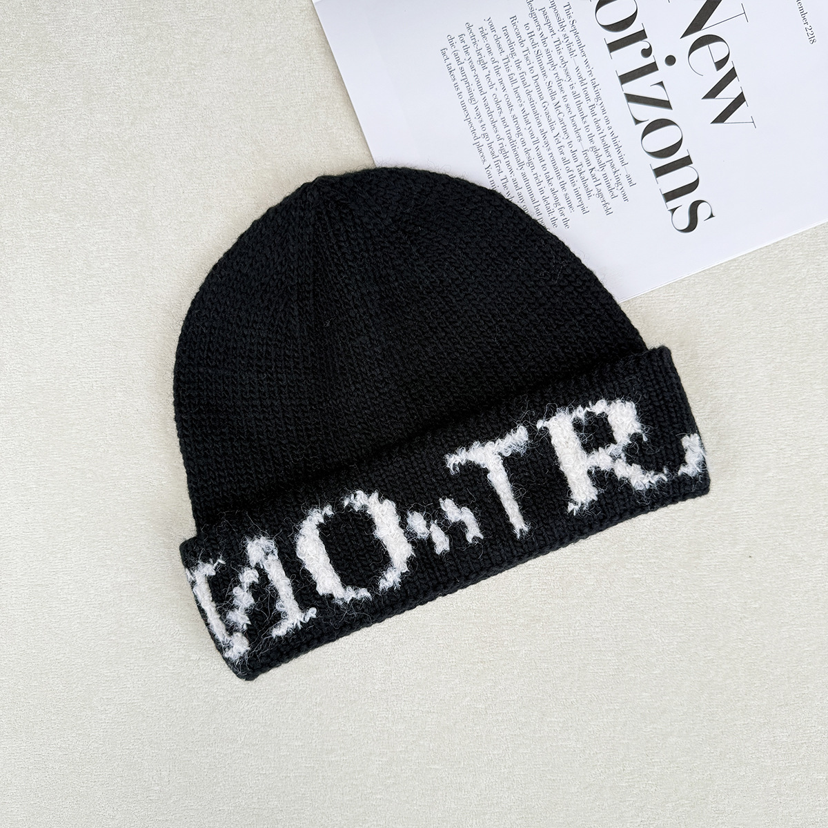 Korean style InS-style letter headwear, round face hat, small woolen knitted hat, warm head wrap for women in autumn and winter