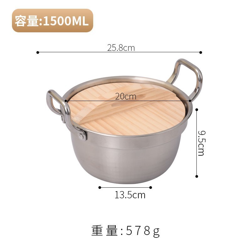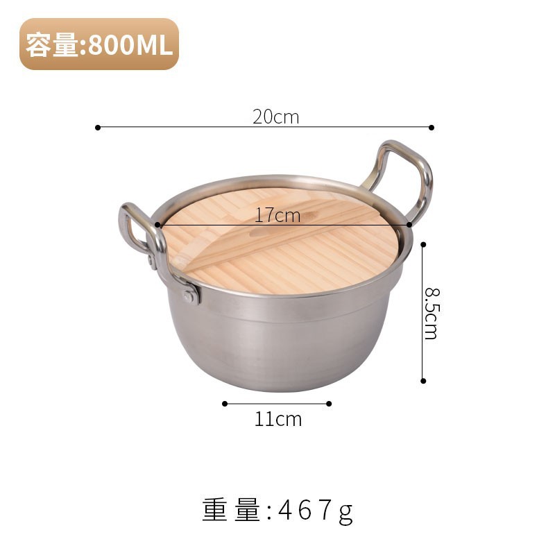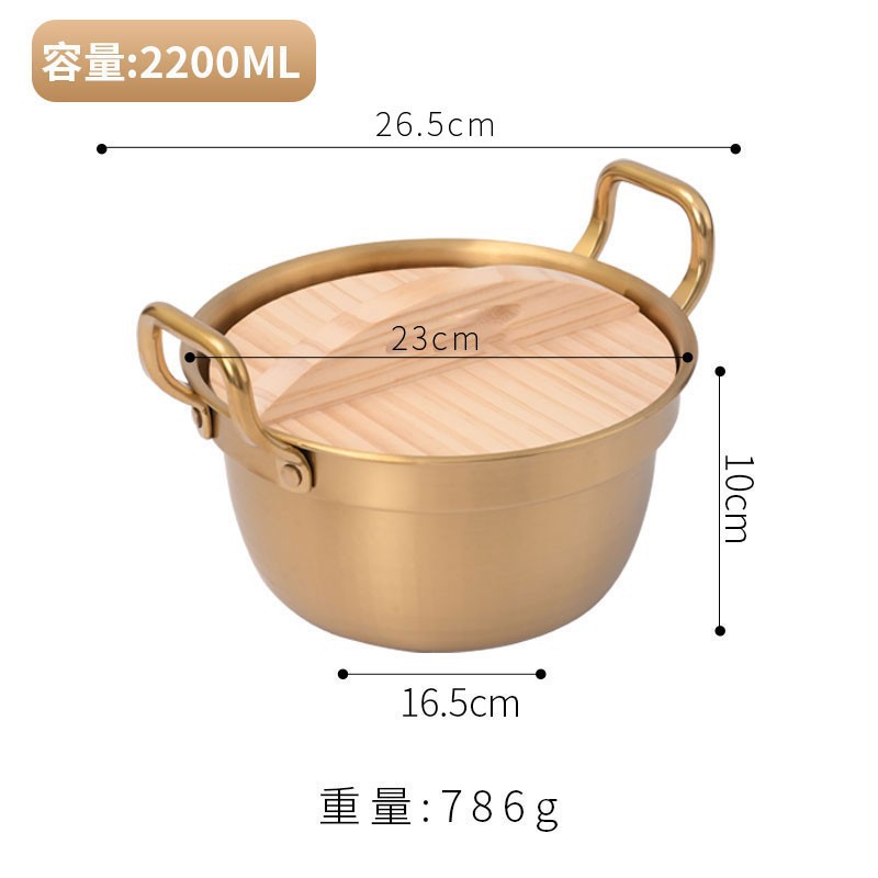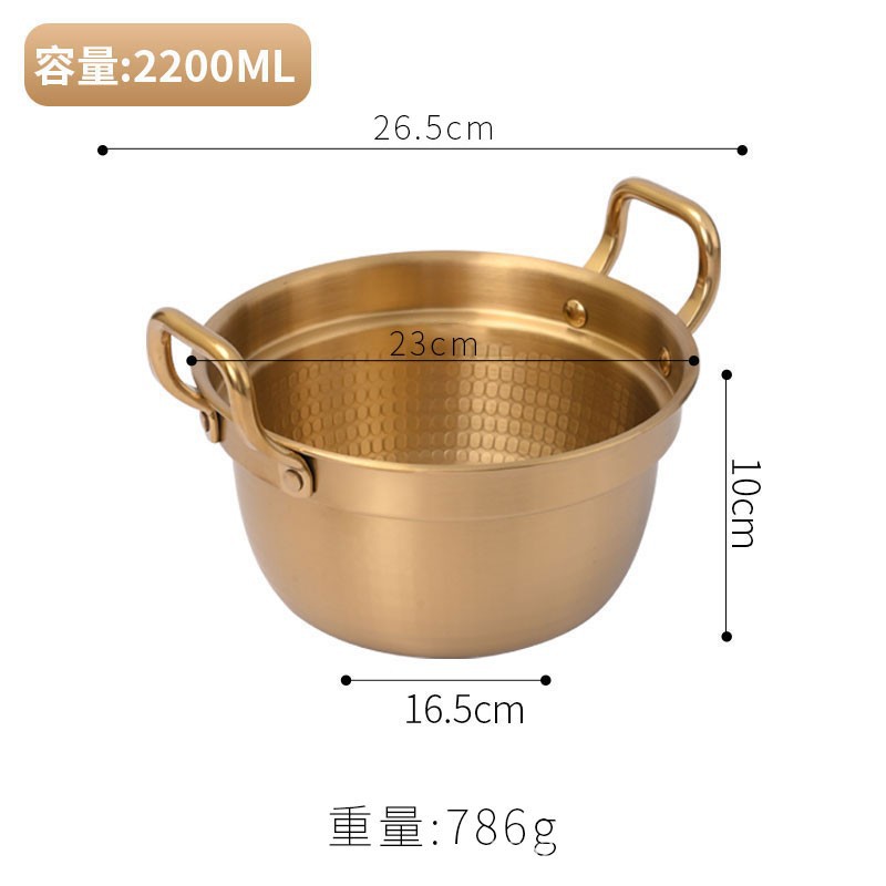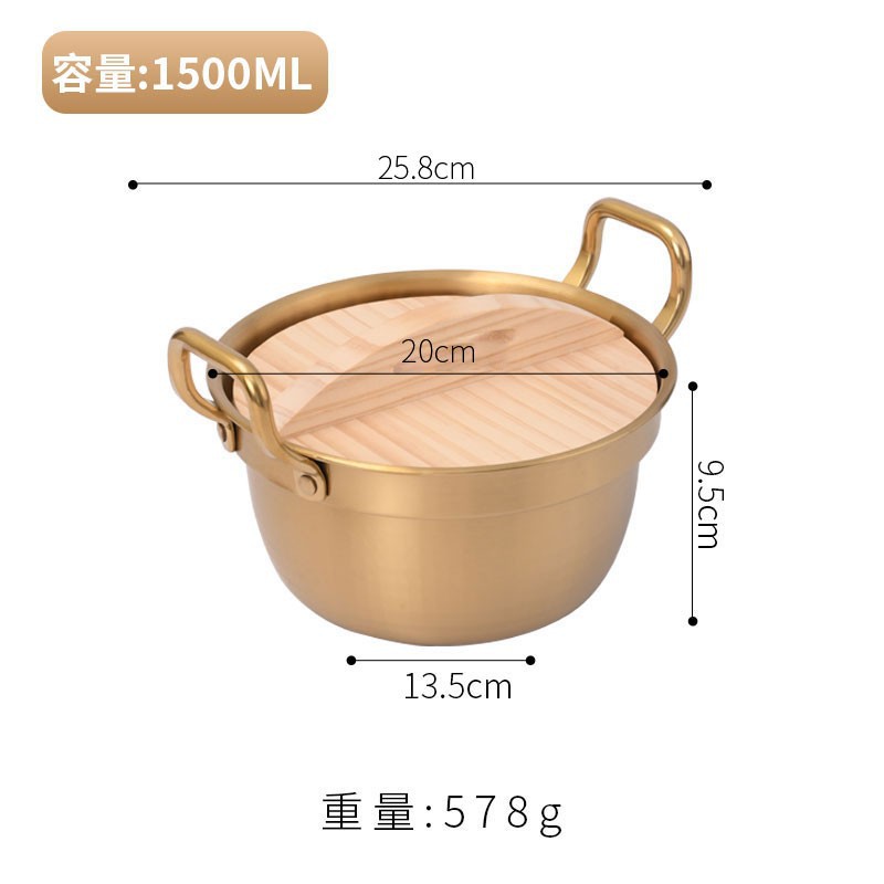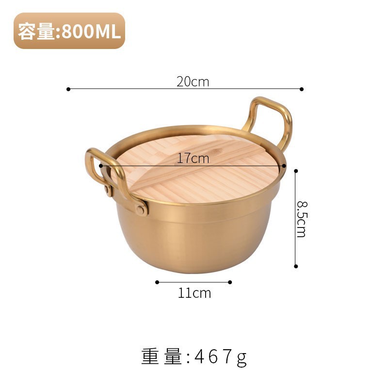 Korean-style instant noodle pot, ramen pot, small cooking pot, household 304 stainless steel double-ear covered rice noodle soup pot