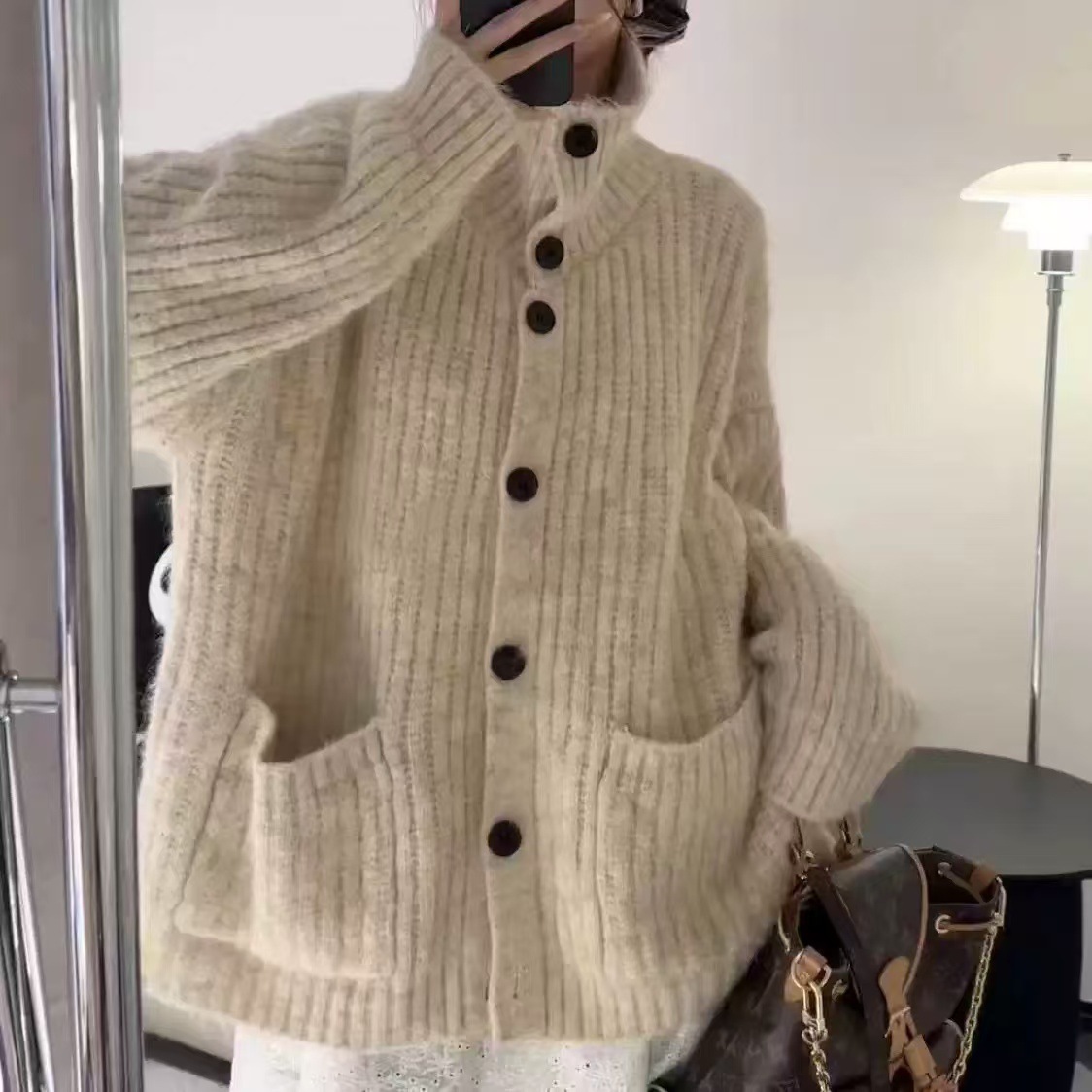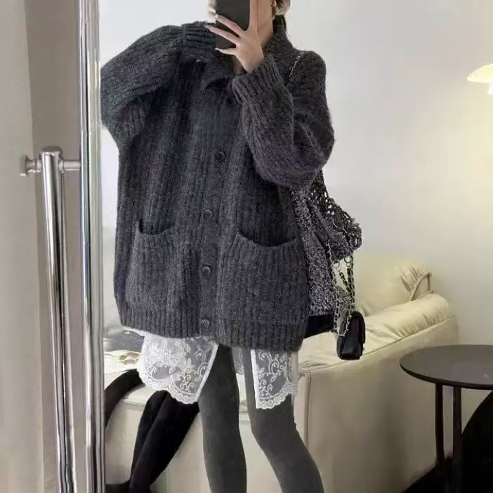 Korean-style laid-back high-neck sweater jacket for women's autumn and winter 2025 new style loose knitted cardigan jacket