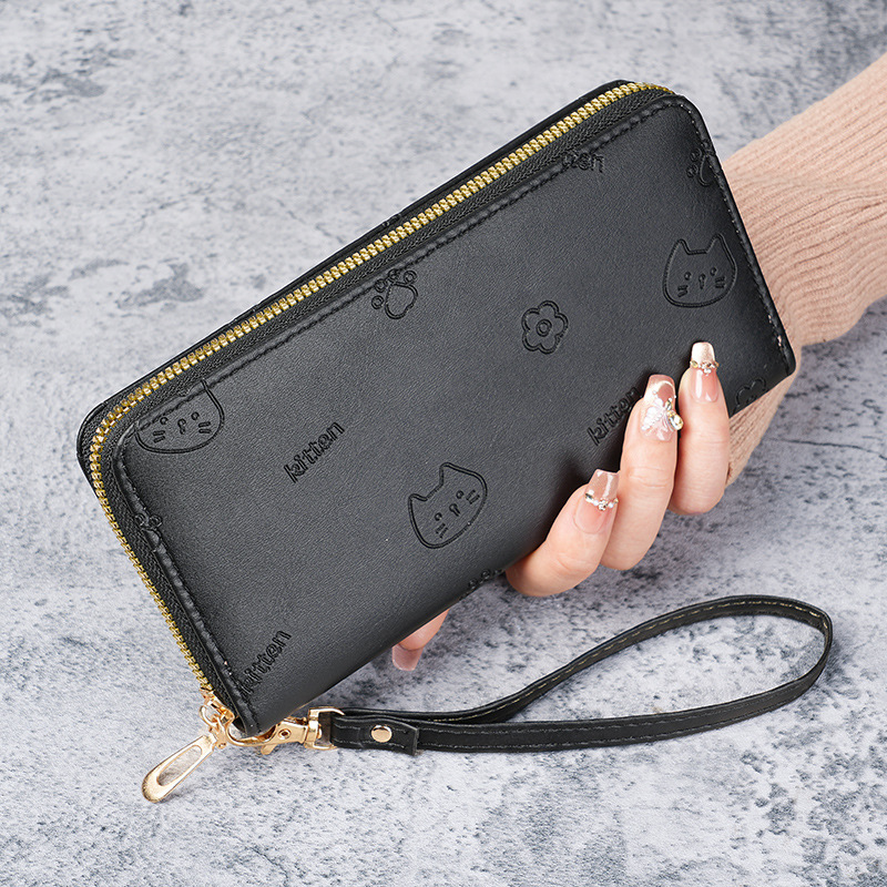 Korean-style long wallet, a fashionable and simple zipper coin purse for women, a large-capacity multi-slot card case, a little cat phone case for women