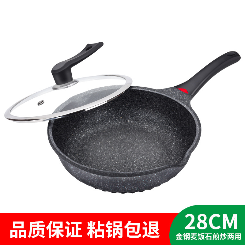 Korean-style tourmaline non-stick pan, household uncoated flat-bottomed wok, induction cooker, gas stove, universal tourmaline wok