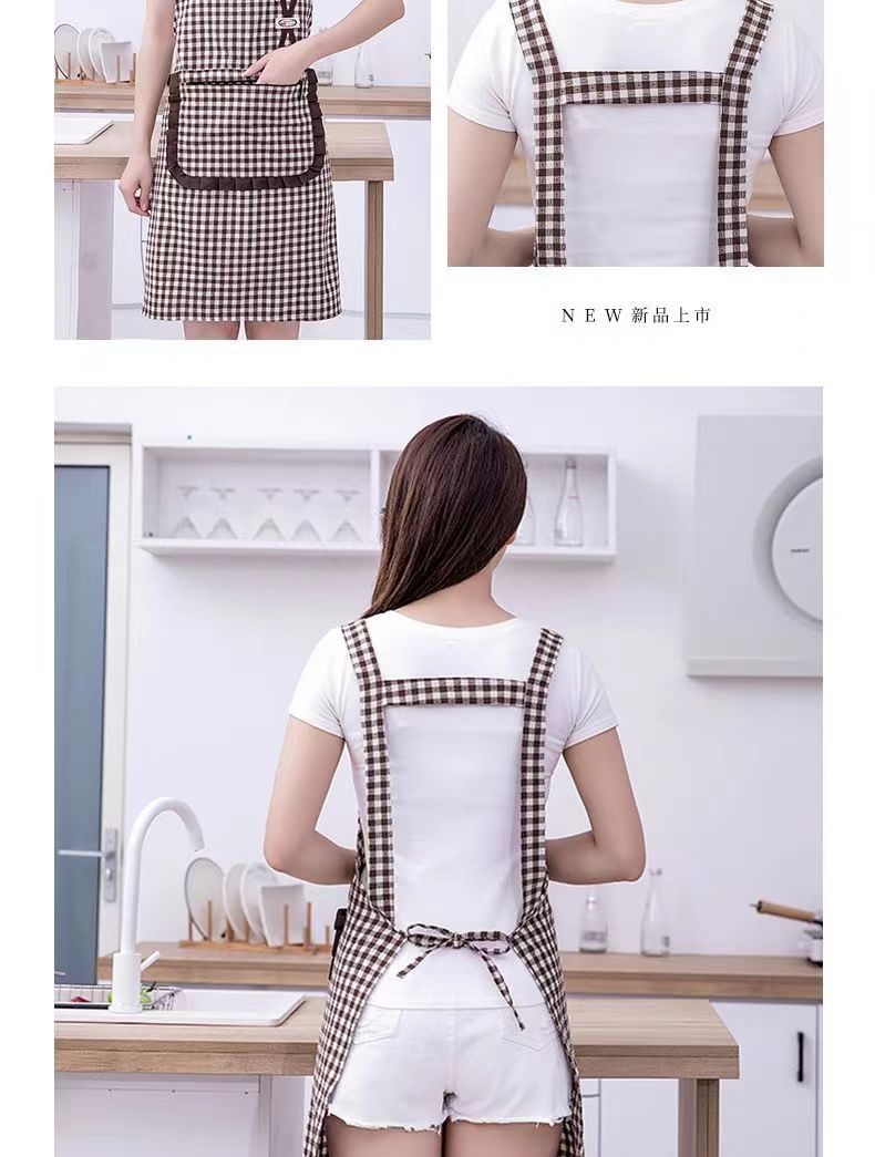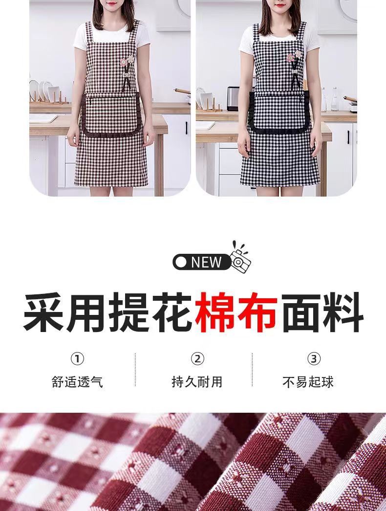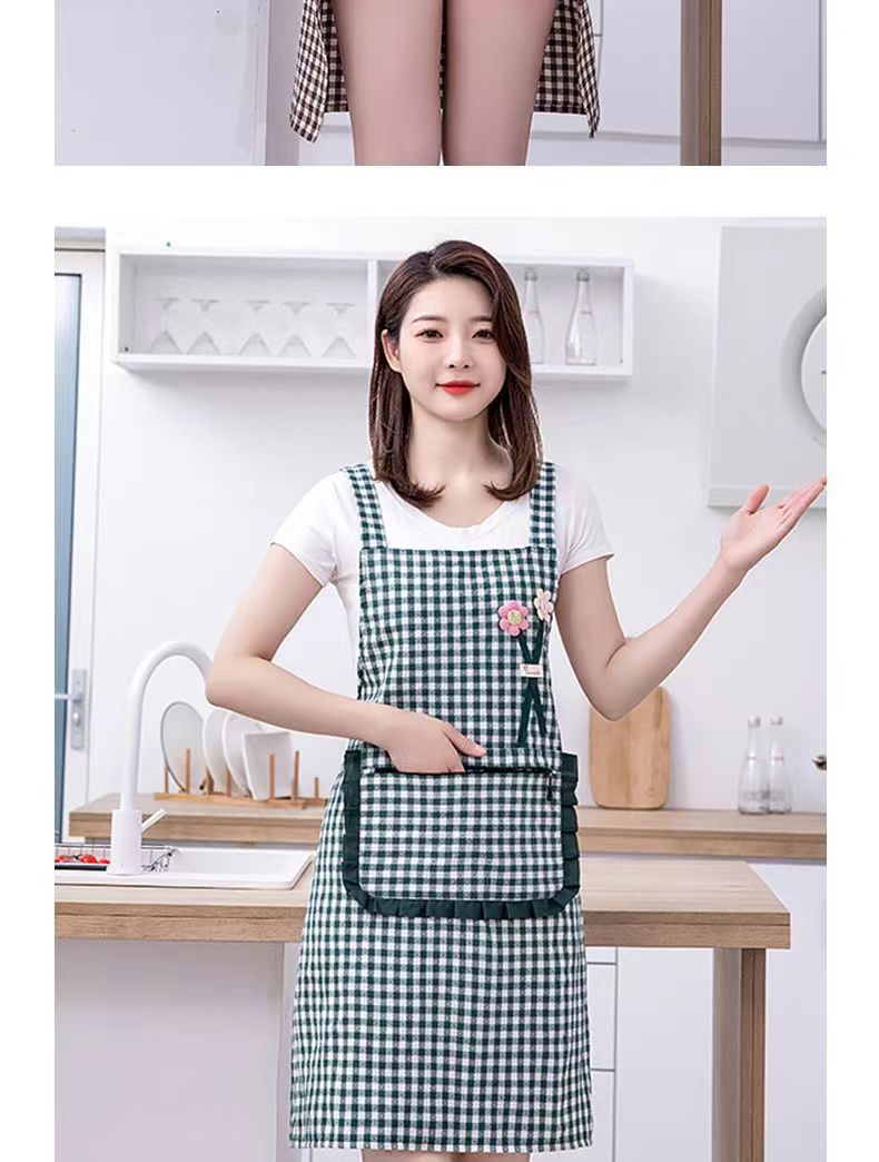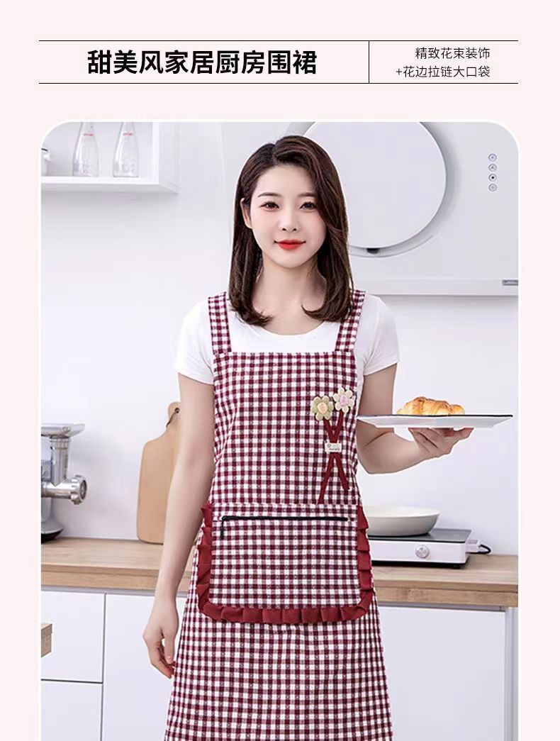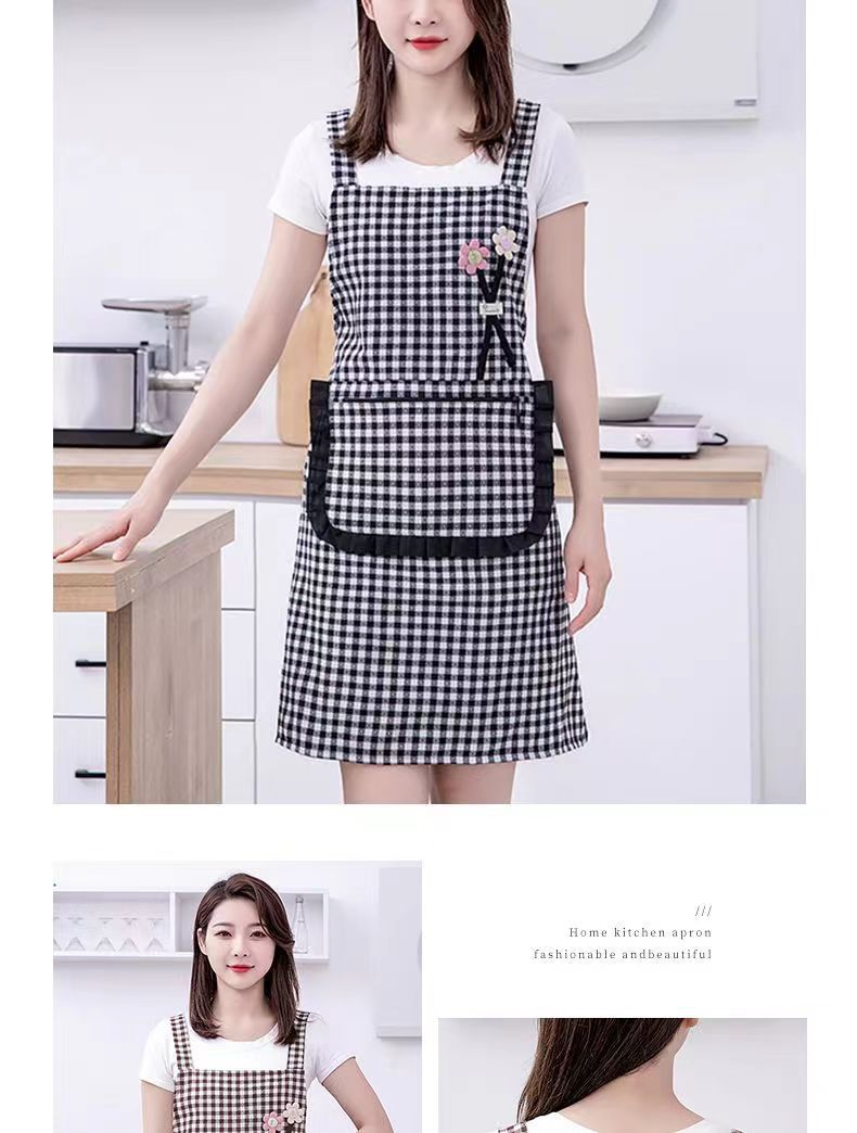 Korean-style women's fashion thickened cotton breathable household apron, kitchen cooking work clothes, sleeveless checked shoulder straps, waistband with sleeve covers, home oil-resistant apron