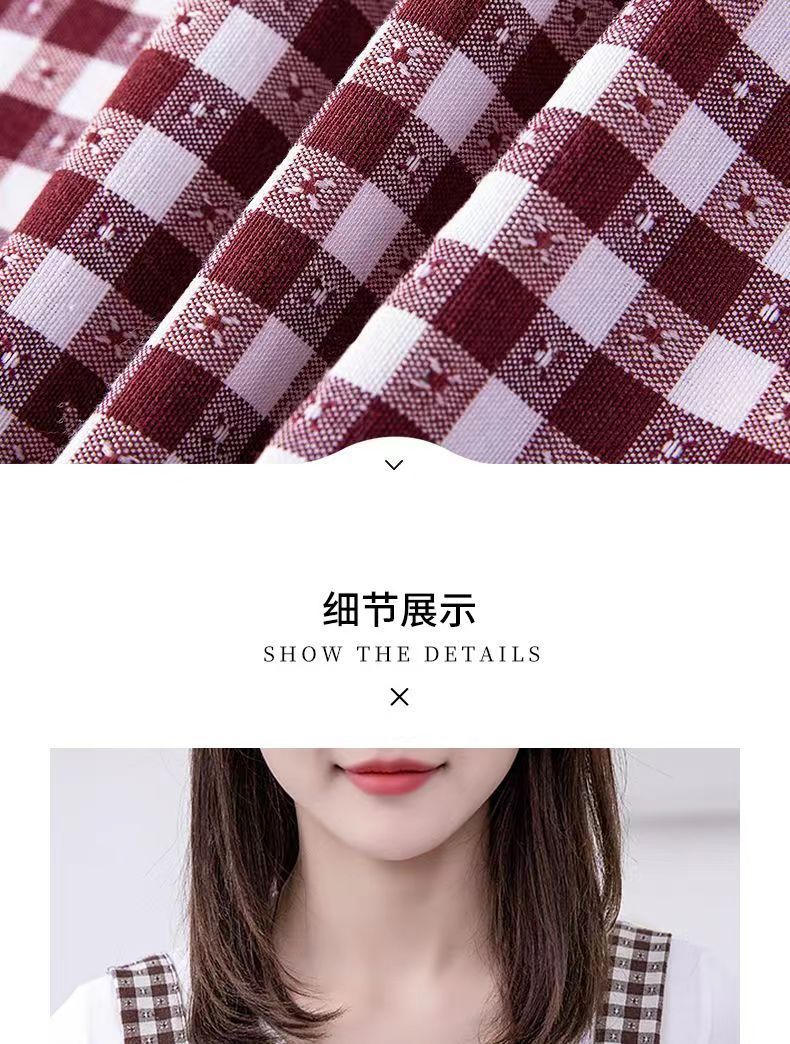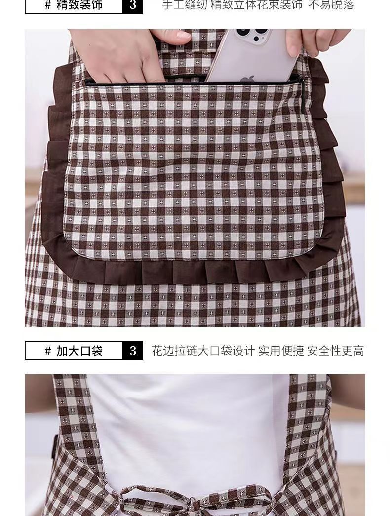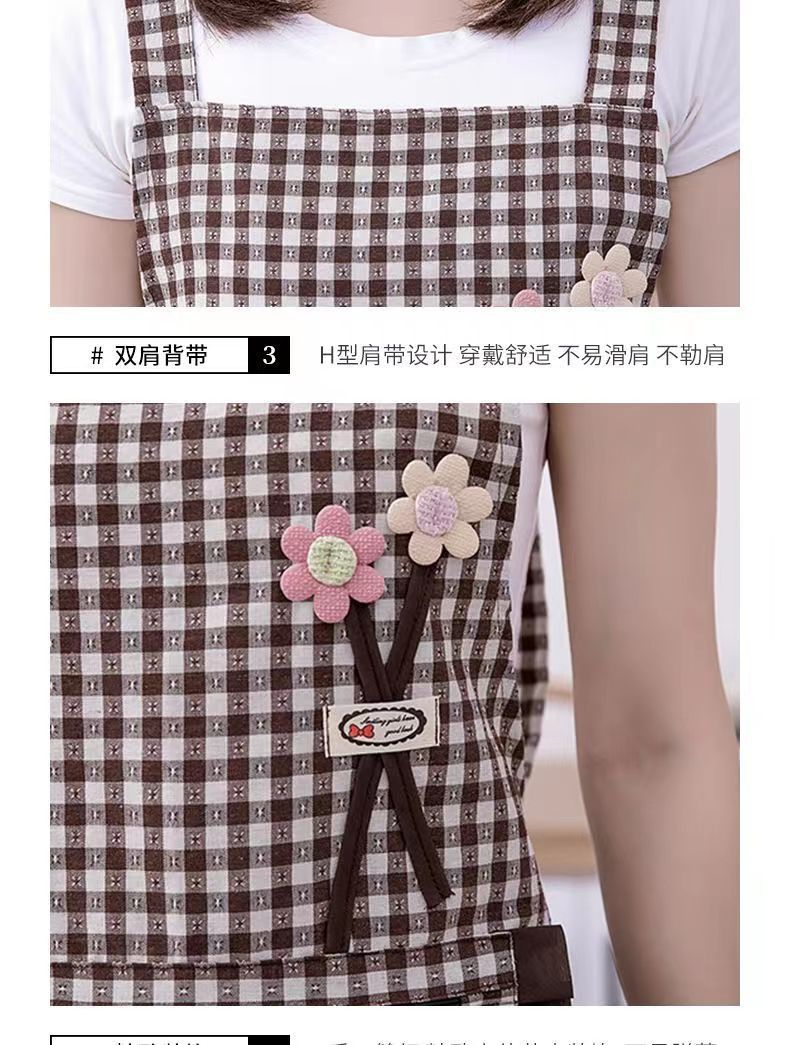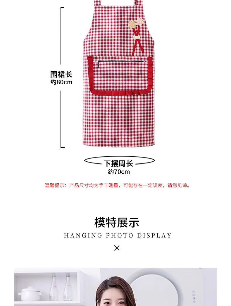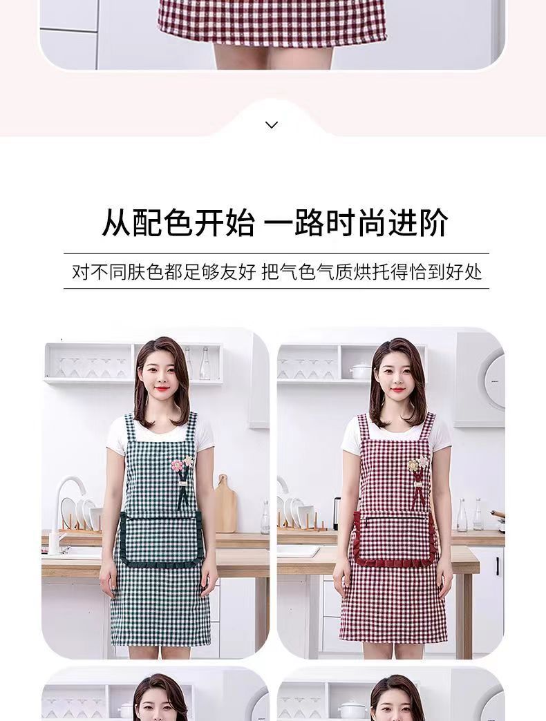 Korean-style women's fashion thickened cotton breathable household apron, kitchen cooking work clothes, sleeveless checked shoulder straps, waistband with sleeve covers, home oil-resistant apron