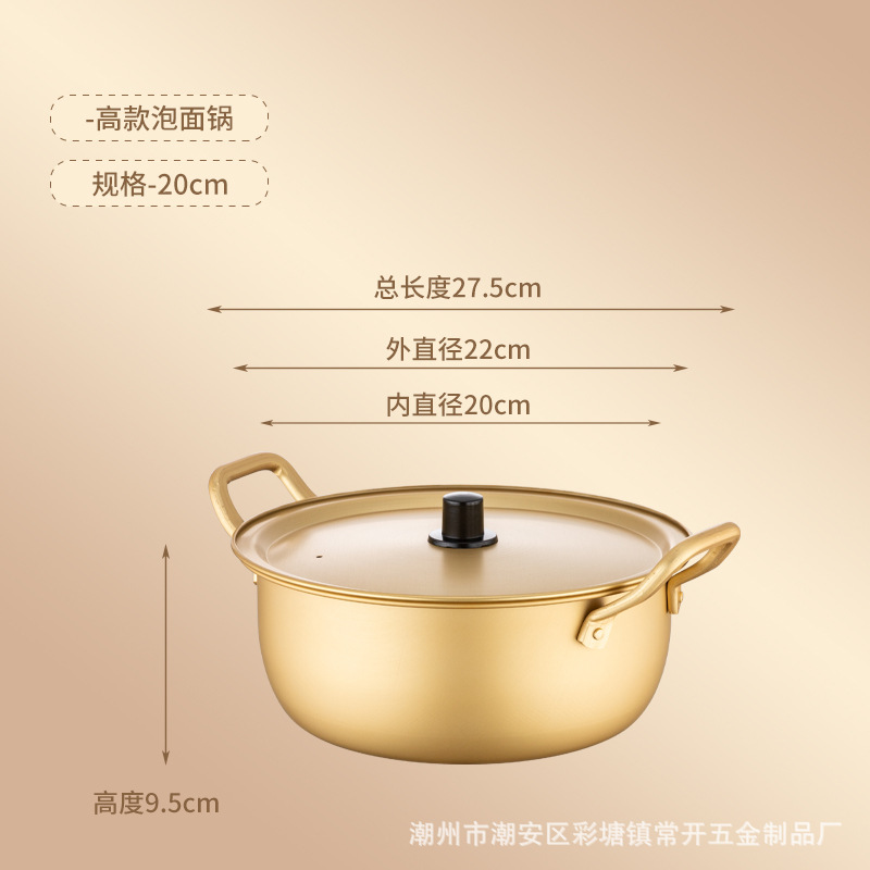 Korean-style yellow aluminum ramen instant noodle pot, Korean drama-style instant noodle pot, hotel restaurant ramen pot, double-ear covered soup pot