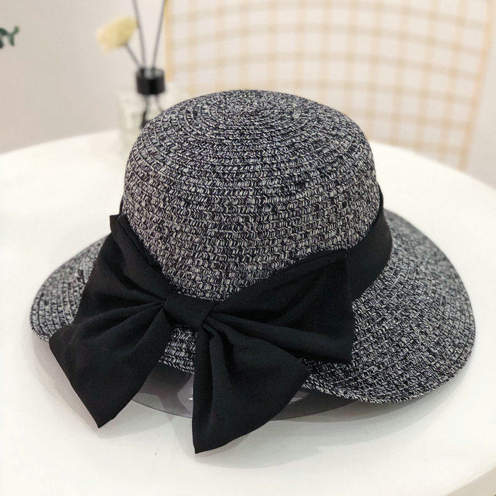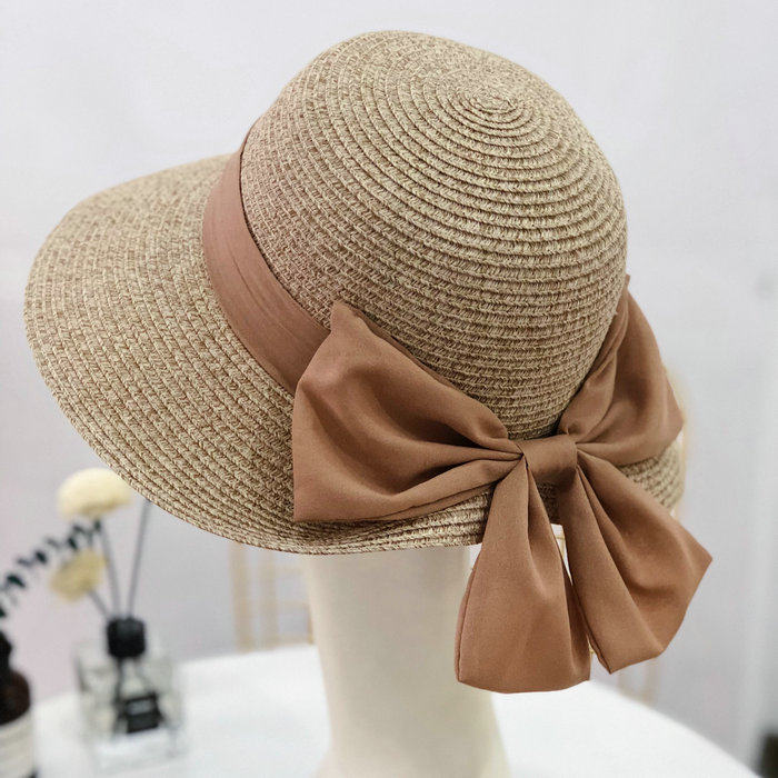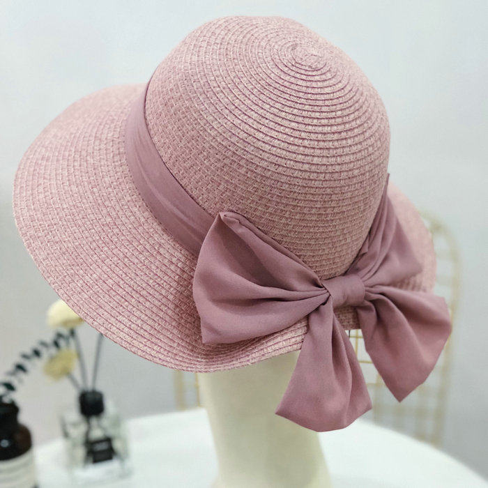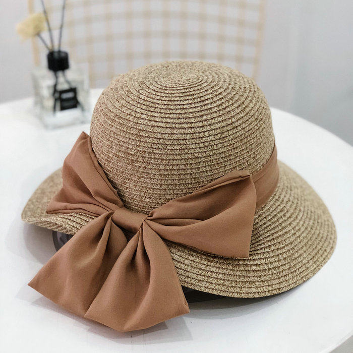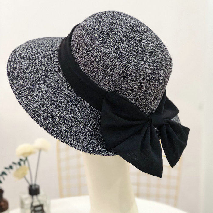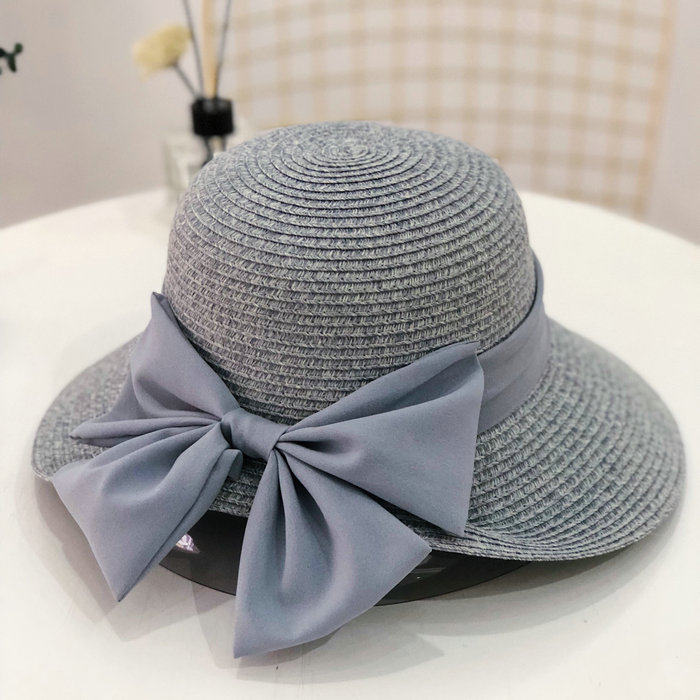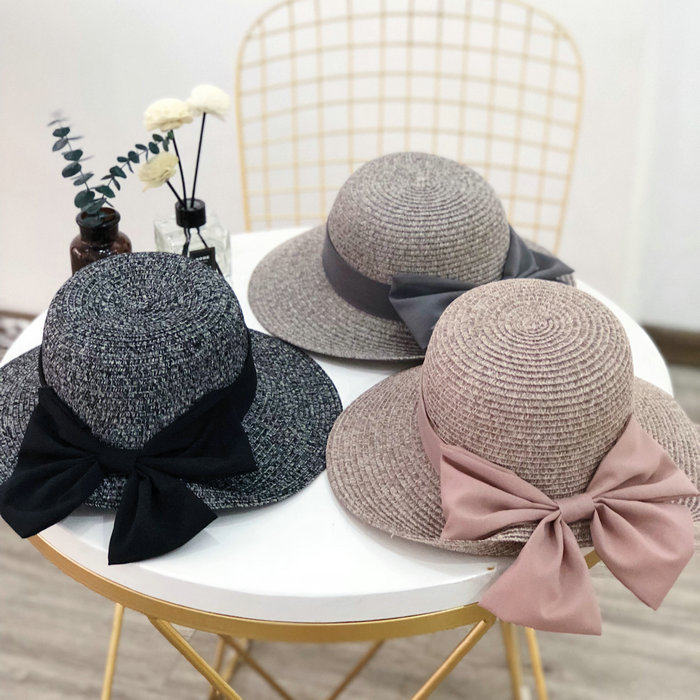 Korean summer folding fisherman's hat, wide-brimmed sun hat, elegant straw hat, finely woven large bow, basin hat for women