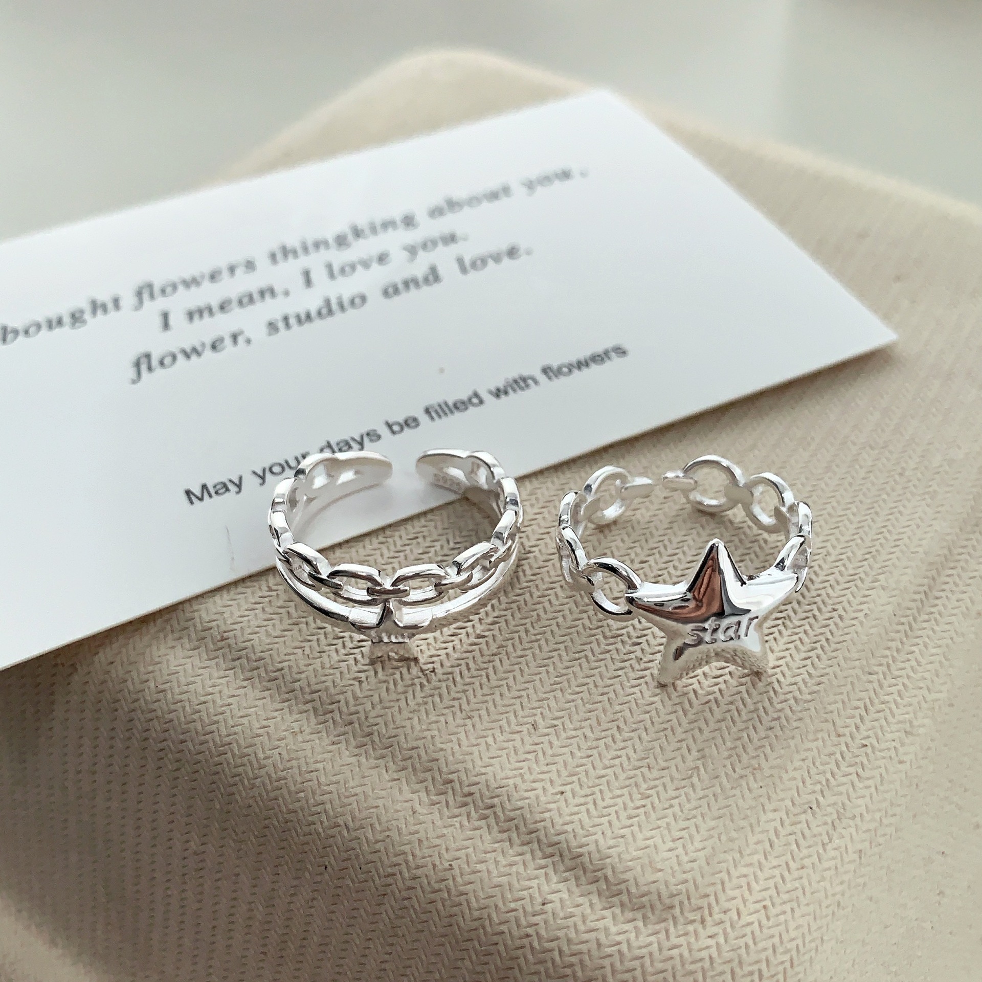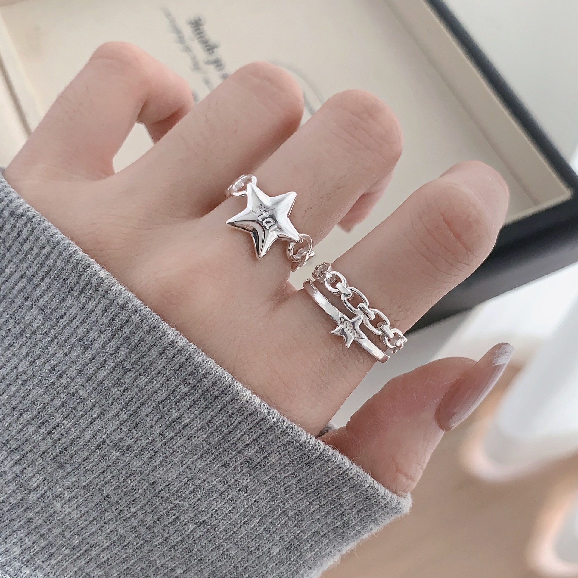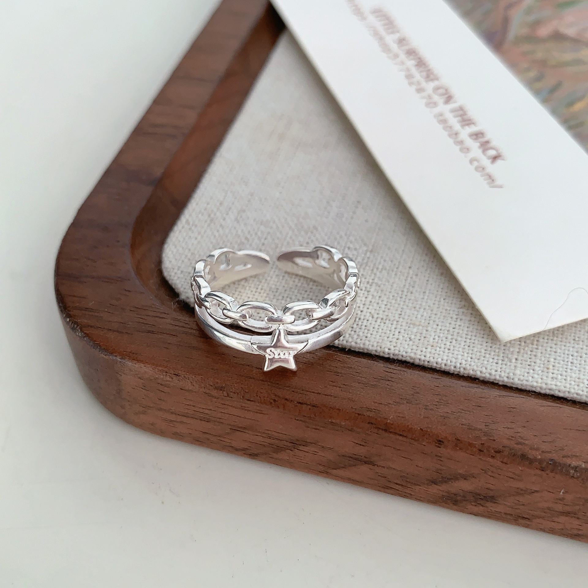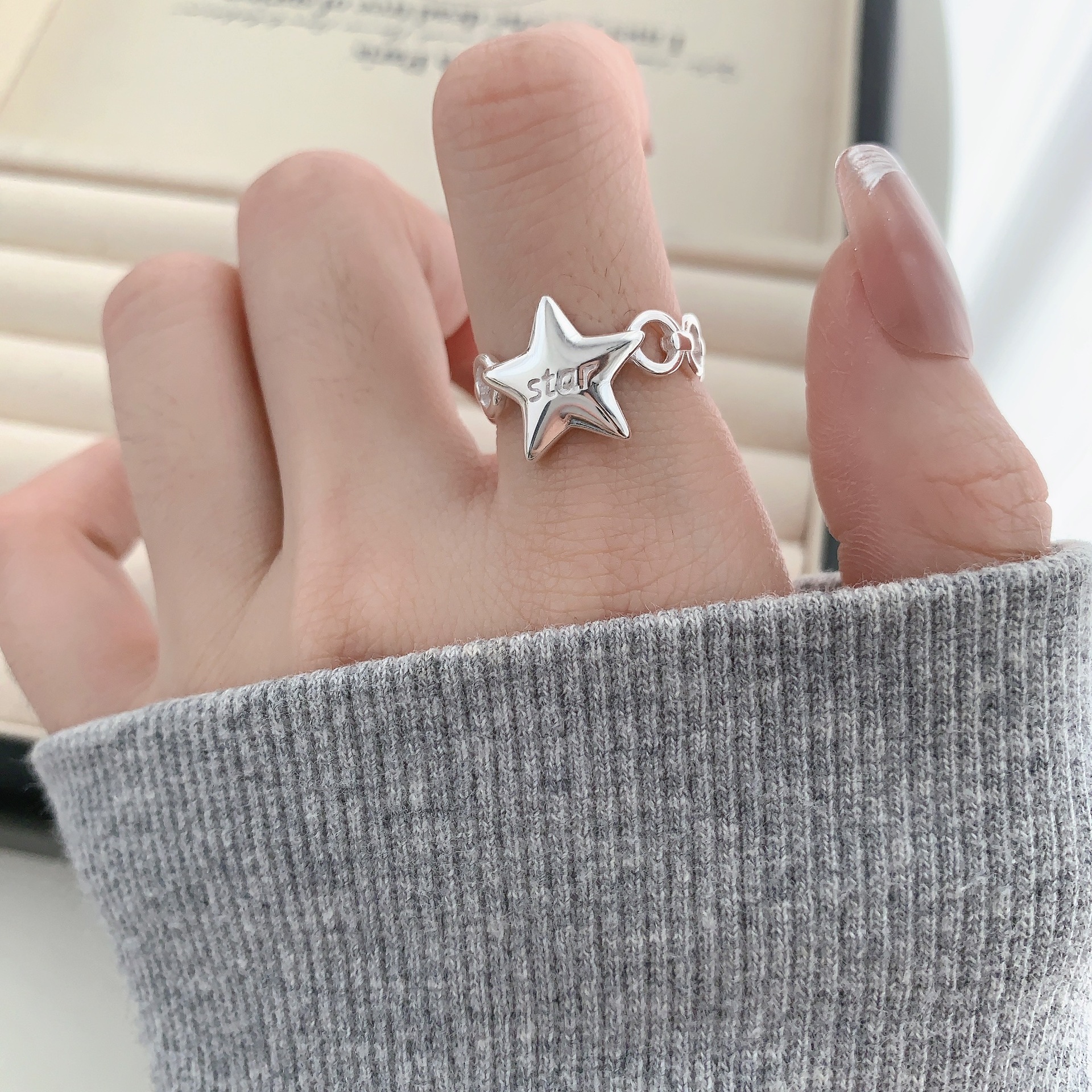 Korean version 12.9 full-body S925 sterling silver chain spliced five-pointed star open ring, women's Instagram niche design, cold style