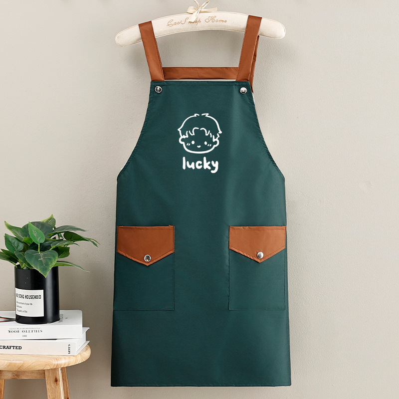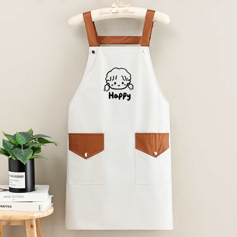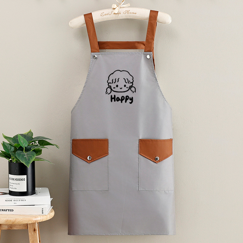 Korean waterproof shoulder strap apron, kitchen home oil-resistant cooking waist, no-wash, catering, work clothes for cooking and baking, printed apron, sleeveless for women