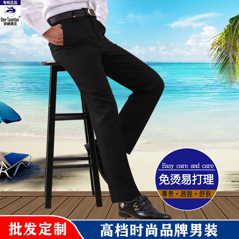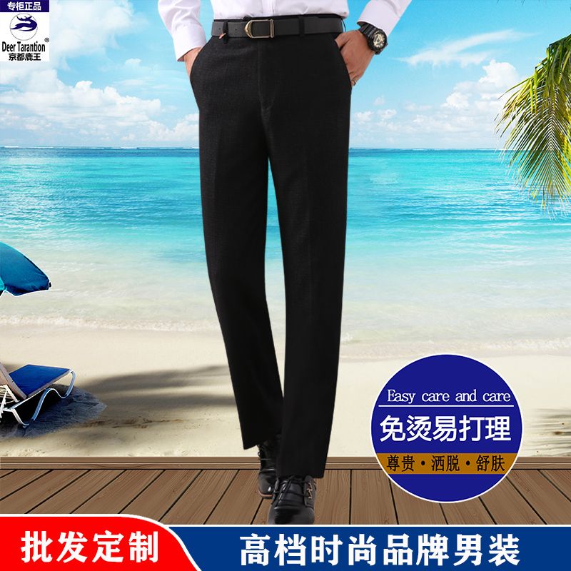 Kyoto Deer King custom-made men's trousers, no-iron business casual men's trousers, straight-leg high-waisted suit trousers