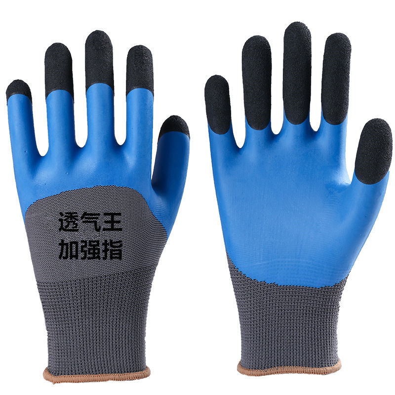 Labor protection gloves with impregnated rubber, wear-resistant, anti-slip and breathable. Reinforced finger work protection impregnated rubber and coated rubber latex gloves