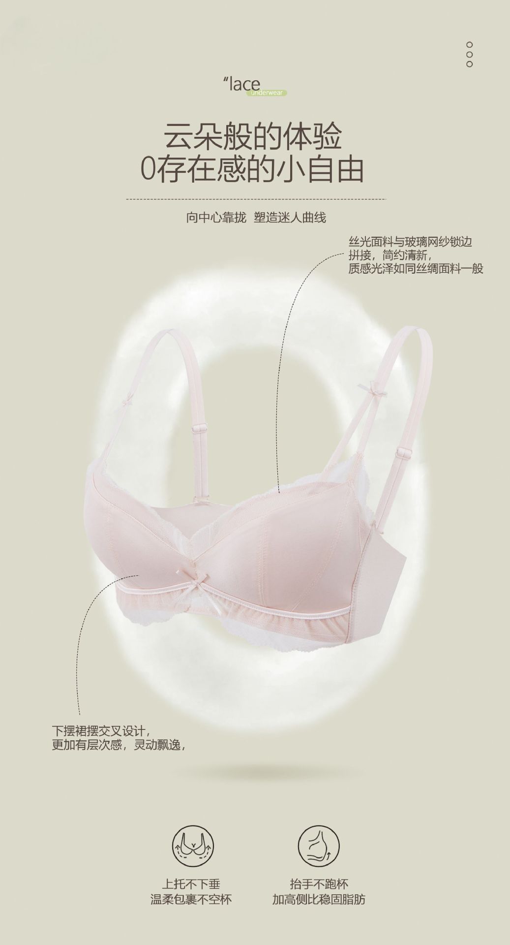 Lace ladies' small breasts gather to make them look larger, anti-sagging and anti-spreading, with a set top support bra cover, and a mid-thick undergarment without a steel ring