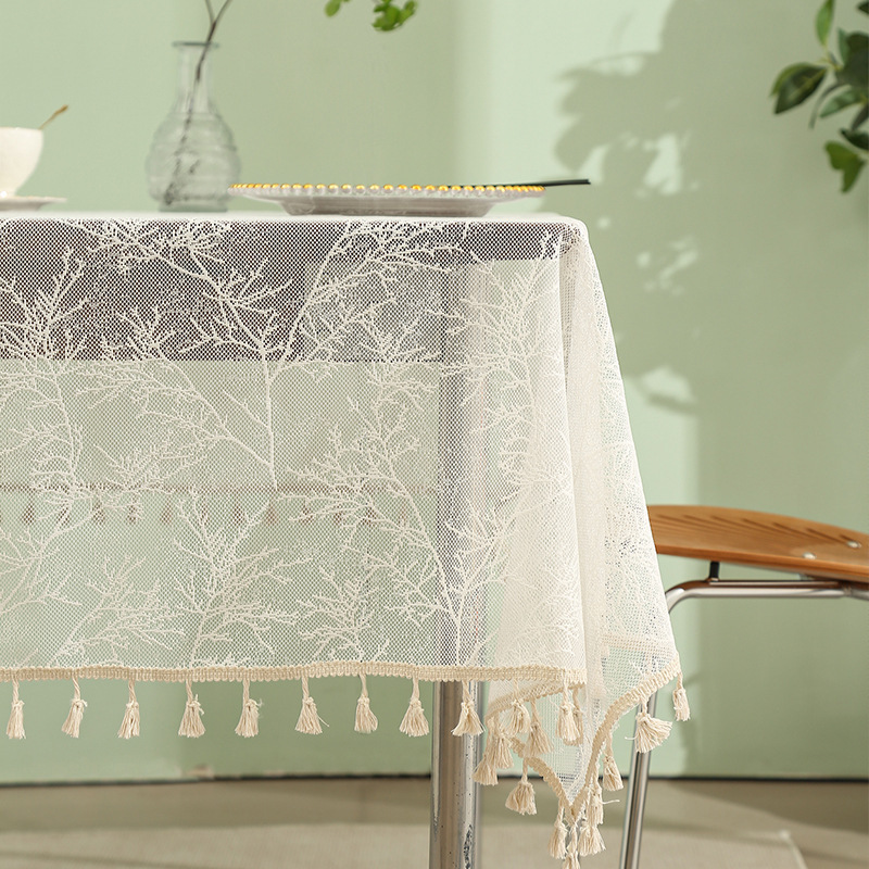 Lace tablecloth, cotton and linen artistic dust-proof country-style tablecloth, hollowed-out household anti-slip table mat, high-end feel, heat-resistant