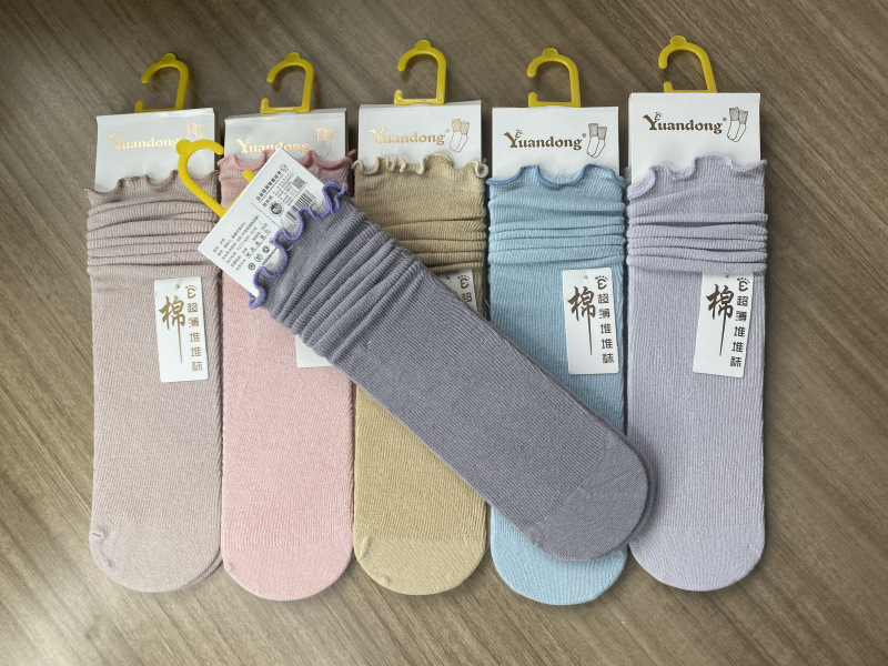 Ladies' autumn and winter long socks, black ear edge pile socks, small leather shoes, mid-calf socks, socks manufacturer wholesale