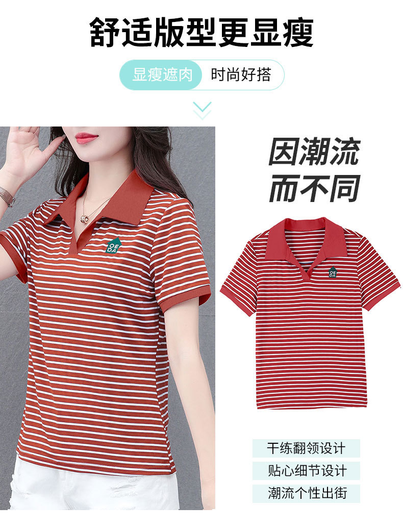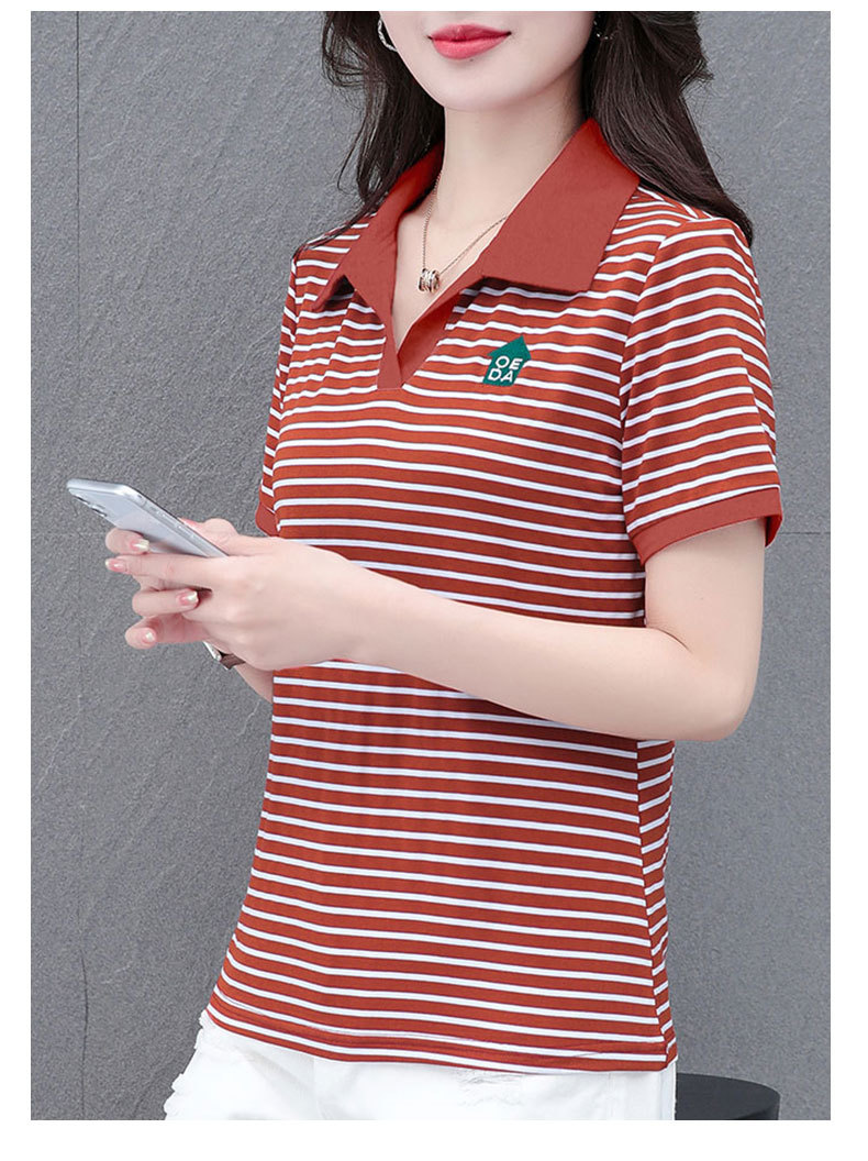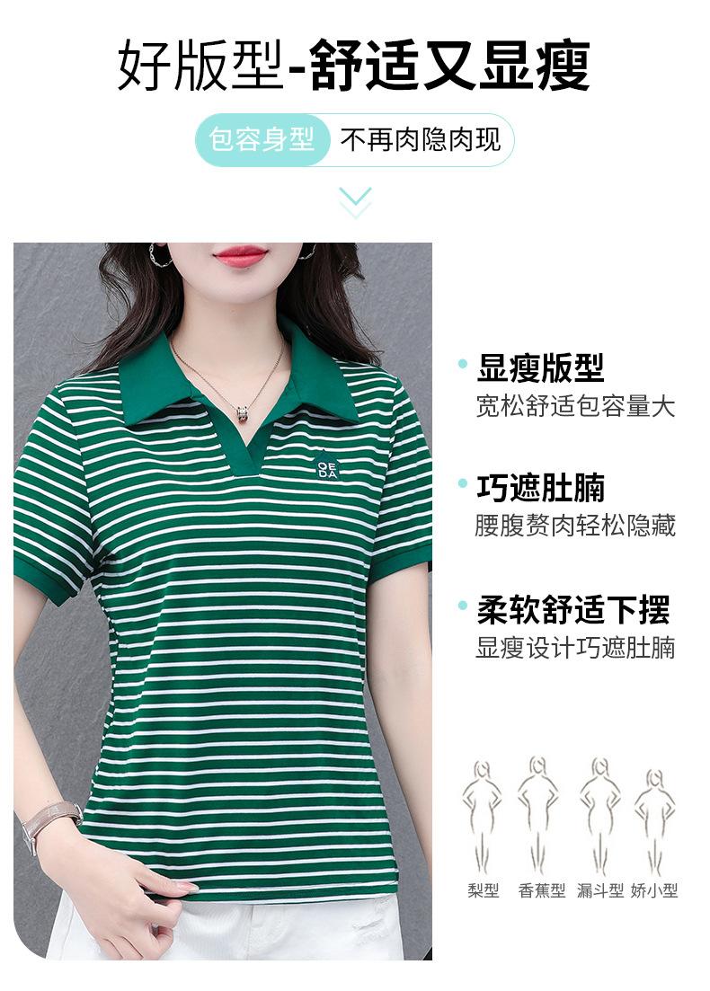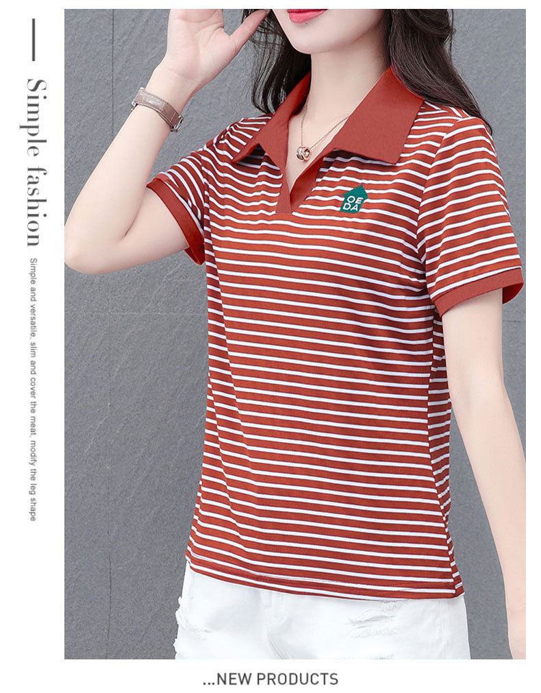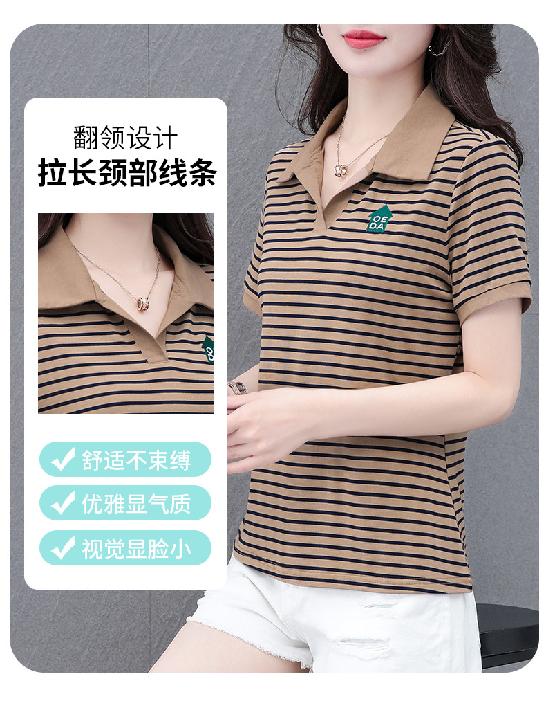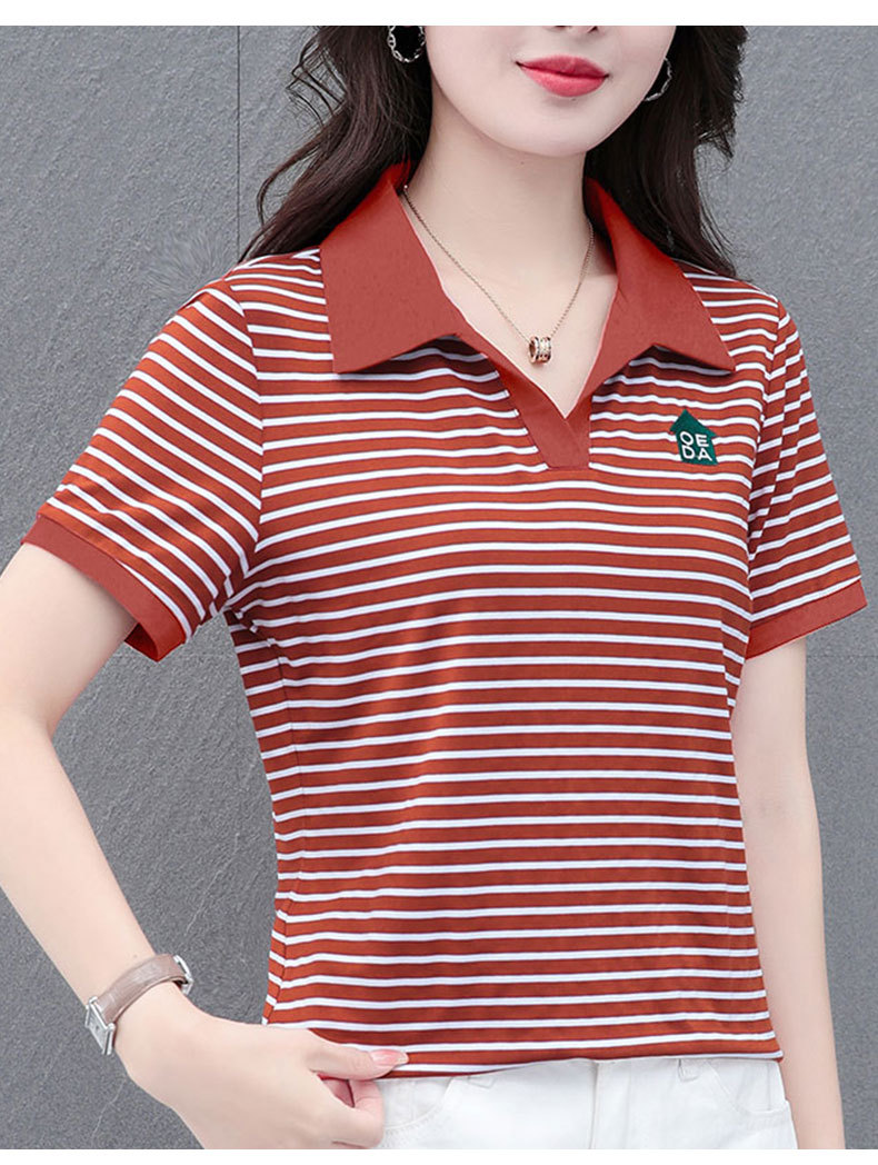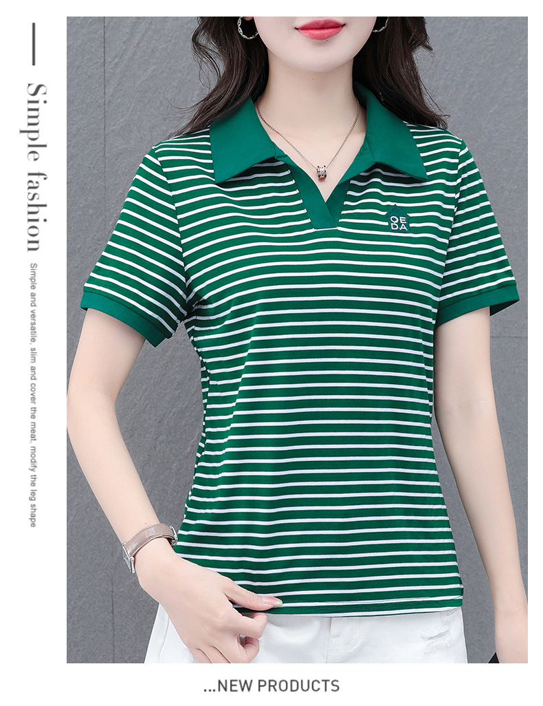 Lapel striped T-shirt for women's summer 2024 new style, fashionable and slimming, versatile casual short-sleeved polo shirt, loose top