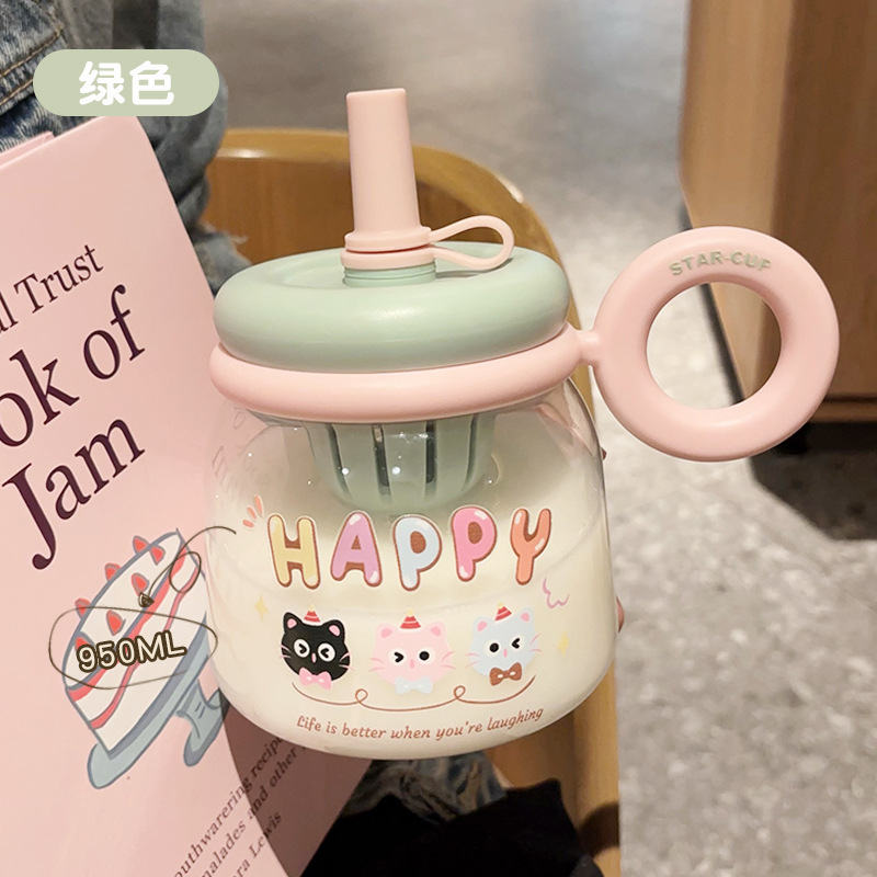 Large-bellied plastic cup 2025 new model large-capacity desktop straw cup for girls, cute tea-water separation portable water cup