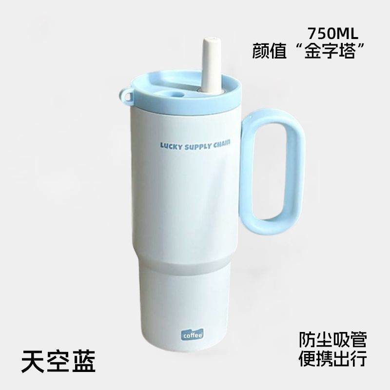 Large-capacity insulated cup, high appearance level for girls, giant ice cup, 316 stainless steel portable double-drinking straw cup