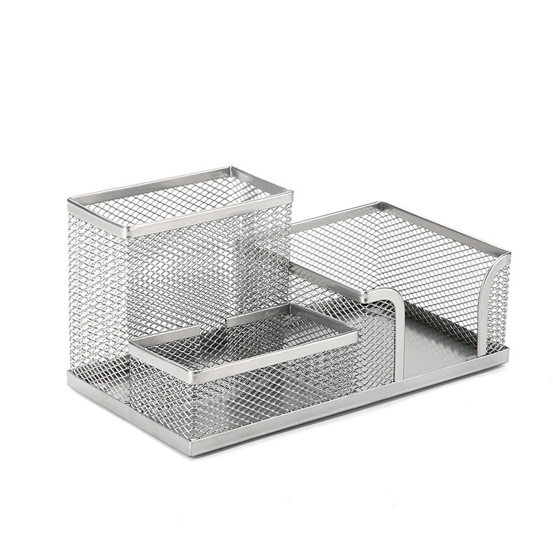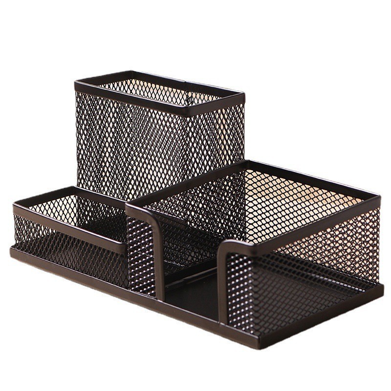 Large-capacity iron mesh three-compartment pen holder, desktop storage, multi-functional combination pen bucket, office and student metal stationery wholesale