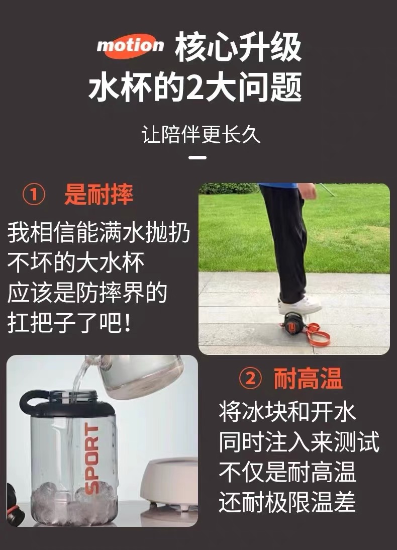 Large-capacity water cup, men's ton-ton bucket, summer sports and fitness outdoor water bottle with handle, high-temperature resistant large-belted cup