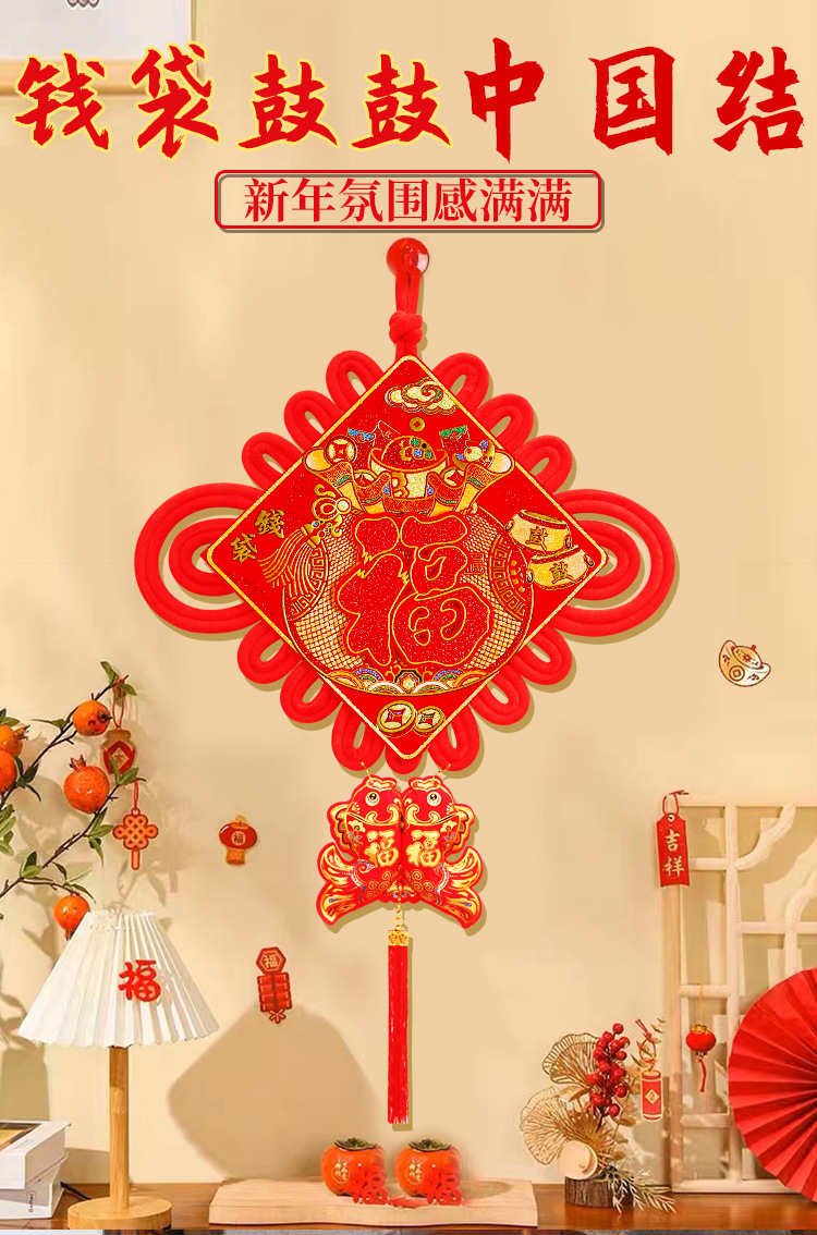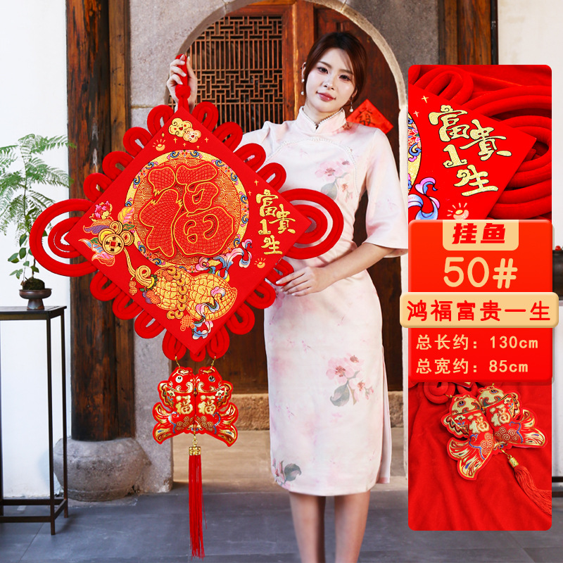Large Chinese knot "Fu" character pendants for living rooms, foyers, entrance doors, shopping malls and stores, festive decorations for the New Year atmosphere