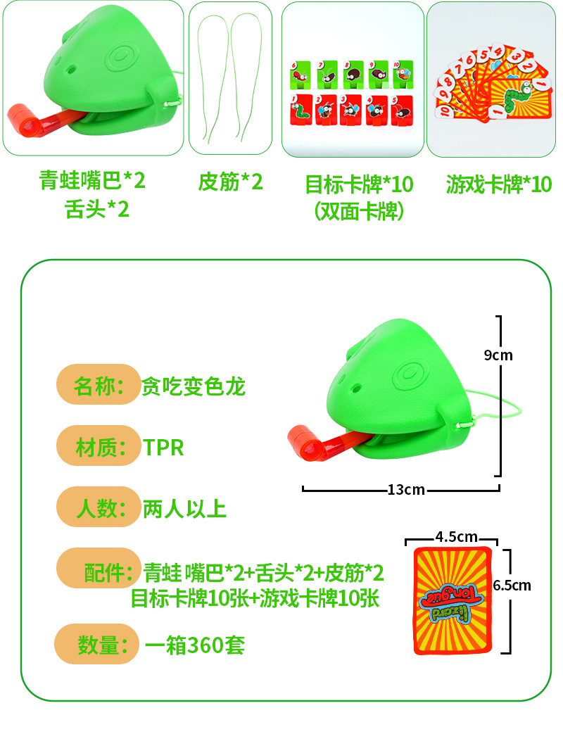 Large frog mouth sticking out tongue, card blowing music, children's toys, chameleon, lizard mask, parent-child board game props
