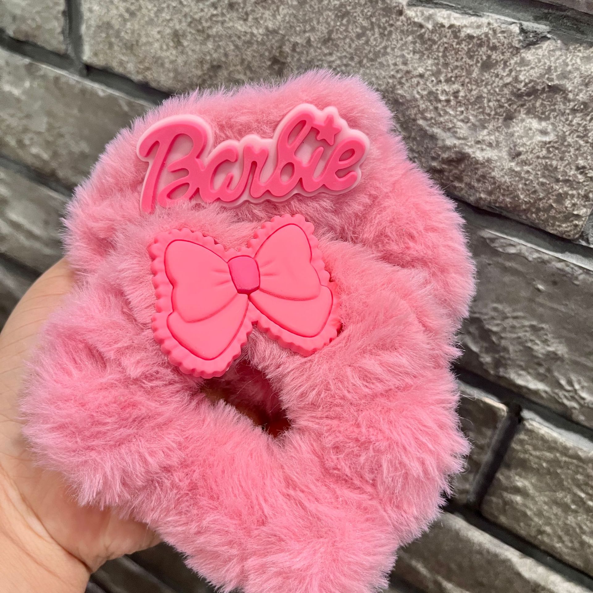 Korean-style rose pink plush hair tie